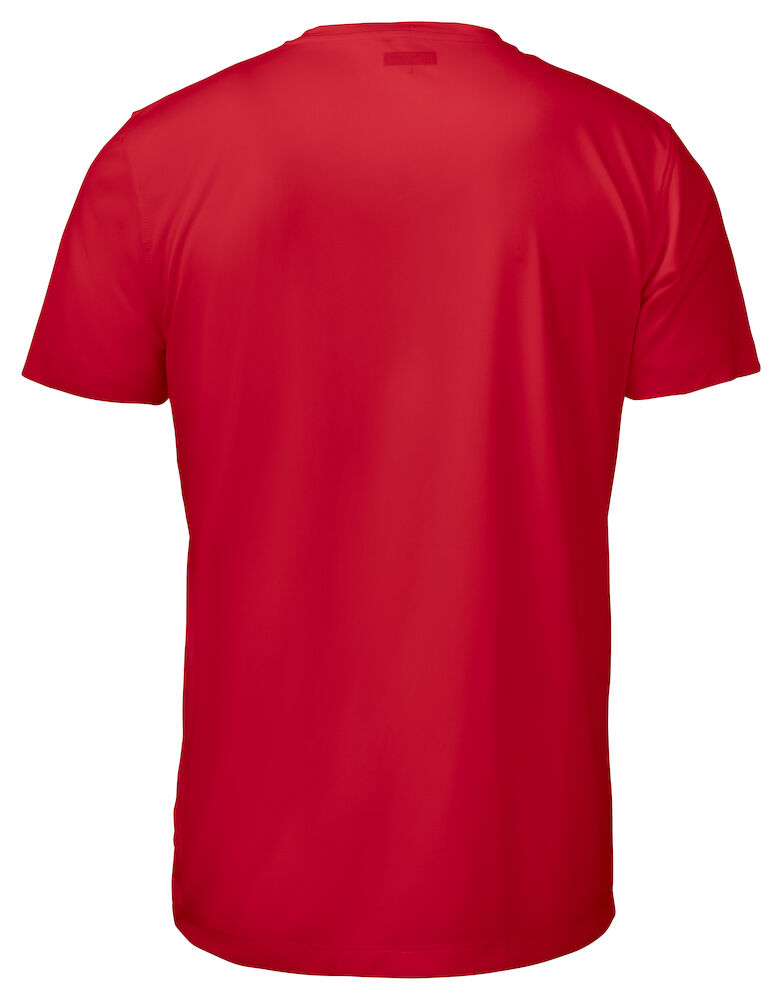 Funktions T-Shirt aus durchgefärbtem Polyester, mit Rundhalsausschnitt und verstärktem geripptem Halsbündchen. Das Funktionsmaterial transportiert die Körperfeuchtigkeit rasch vom Körper weg, trocknet schnell und gewährleistet ein angenehm frisches und trockenes Gefühl den ganzen Tag. Vorgeschrumpft und knitterfrei.