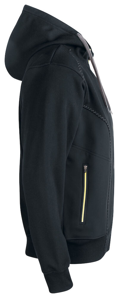 Kapuzenjacke mit durchgehendem Reissverschluss. Seitenpartien mit Softshell verstärkt. Seitentaschen mit Reissverschluss. Angenehmes und pflegeleichtes Mischgewebe.