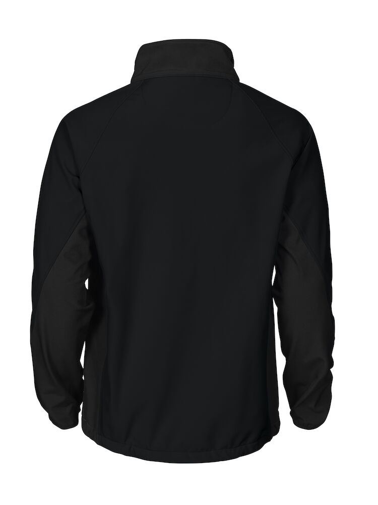 Atmungsaktive Softshell Jacke mit Kontrastelementen an den Seiten und um die rechts angebrachte Brusttasche. Zwei Seitentaschen und auch die Brusttasche mit Reissverschluss. Erhöhter Kragen und durchgehender Reissverschluss mit Kinnschutz. Justierbar im Taillenbereich.