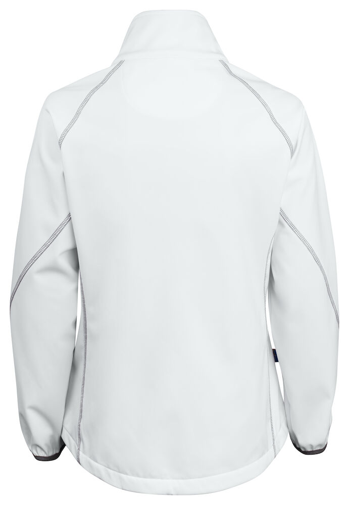 Atmungsaktive Softshell Jacke für Damen. Zwei Seitentaschen und eine Brusttasche mit Reissverschluss. Zwei Innentaschen. Windschutzleiste innen und Kinnschutz. Verstellbare Taille.