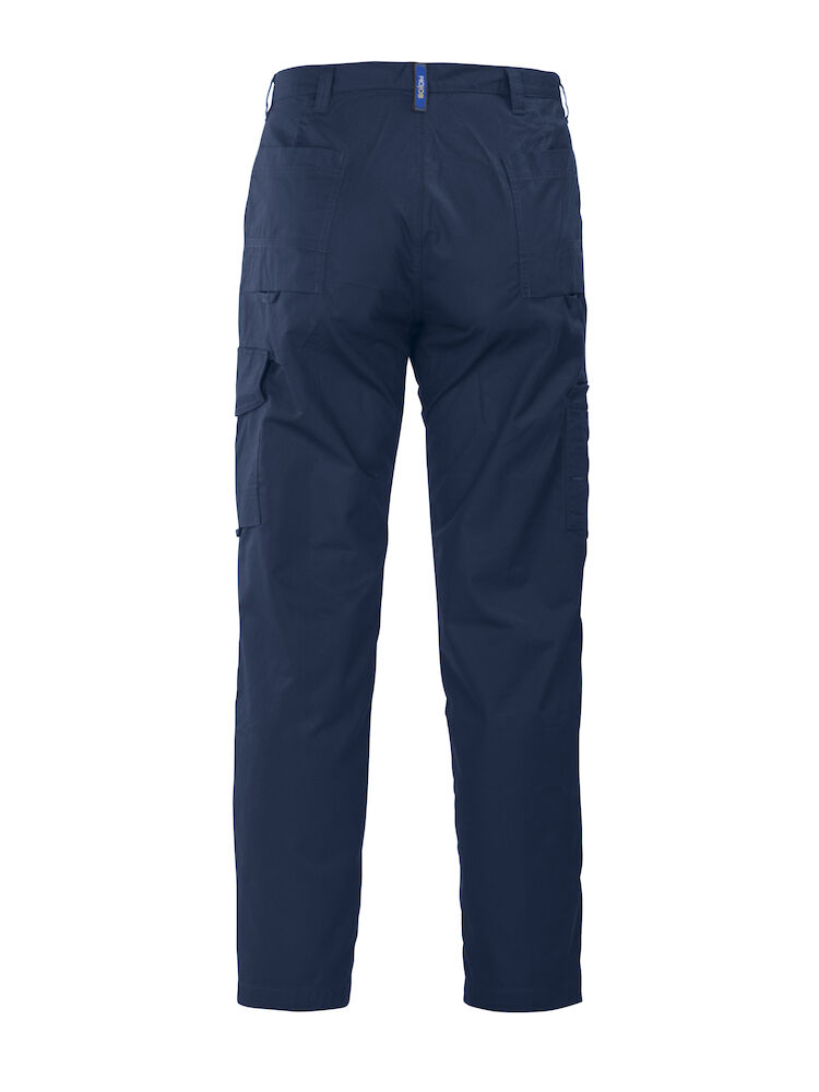 Gerade geschnittene leichte Arbeitshose ohne Bundfalte aus 100% Baumwolle. Seitentaschen und Sicherheitstasche mit Reissverschluss auf der rechten Seite. Zwei aufgesetzte Gesässtaschen. Zwei Beintaschen. Die linke Tasche mit Patte und innen liegender Handy Tasche. Die rechte Tasche bietet Platz für Mobiltelefon, Schreibgeräte, Dokumente und Meterstab. D-Ring für Schlüssel oder ID Karte, etc.. Knieprotektortaschen mit Öffnungen auf der Innenseite des Hosenbeins. Schlaufen unter den Gesäss- und Beintaschen