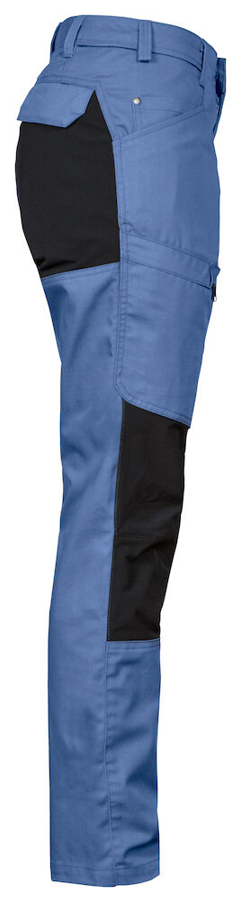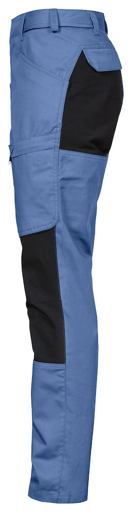 Modern geschnittene flexibel einsetzbare Damen Arbeitshose. 4-Wege Stretchmaterial im Gesässbereich, im Schritt und an den Knien sorgen für viel Bewegungsfreiheit. Zwei vordere Jeanstaschen. Zwei Beintaschen auf den Oberschenkeln mit Reissverschluss und weiteren Unterteilungen. Zwei nach innen gearbeitete Gesässtaschen mit Klettverschluss Patte. Keine Metertasche. Verdeckter Jeansknopf vorne. Vorbereitungen für Hängetaschen (optional Erhältlich PJ 9042). Am Beinende um 5 cm verlängerbar.