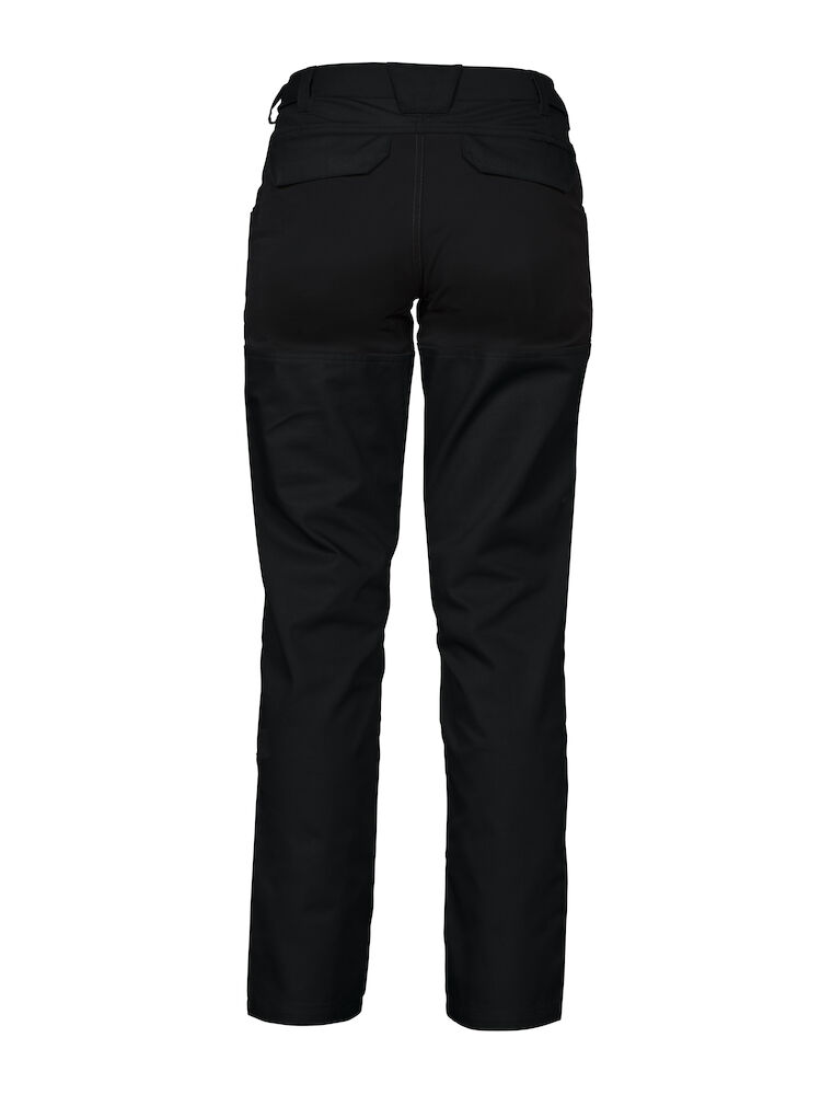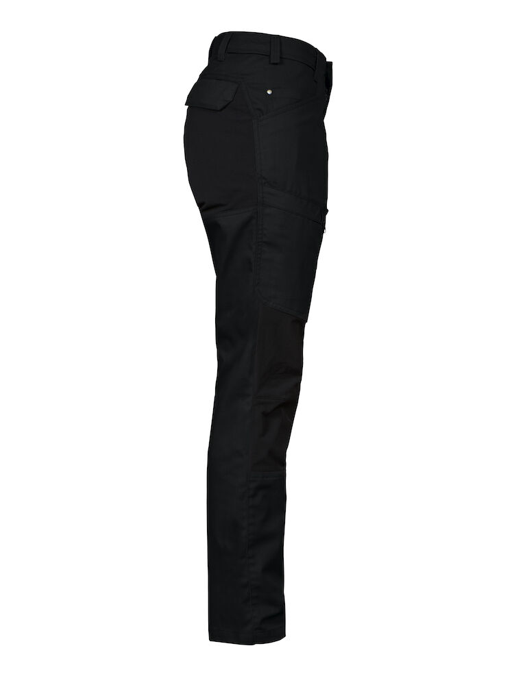 Modern geschnittene flexibel einsetzbare Damen Arbeitshose. 4-Wege Stretchmaterial im Gesässbereich, im Schritt und an den Knien sorgen für viel Bewegungsfreiheit. Zwei vordere Jeanstaschen. Zwei Beintaschen auf den Oberschenkeln mit Reissverschluss und weiteren Unterteilungen. Zwei nach innen gearbeitete Gesässtaschen mit Klettverschluss Patte. Keine Metertasche. Verdeckter Jeansknopf vorne. Vorbereitungen für Hängetaschen (optional Erhältlich PJ 9042). Am Beinende um 5 cm verlängerbar.