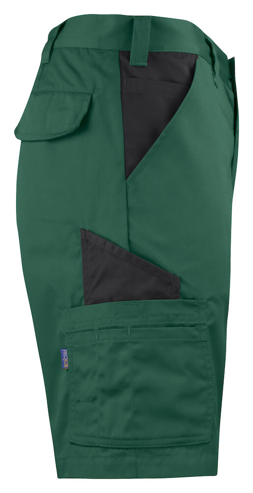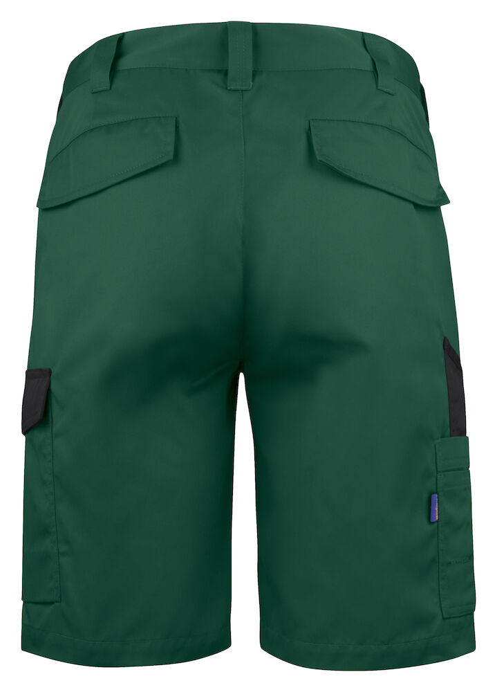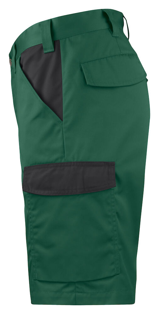 Leichte, modern geschnittene Shorts mit zwei Beintaschen und Gesässtaschen mit Patte. Die linke Beintasche mit Patte und innen liegender Handy Tasche. Die rechte Tasche bietet Platz für Mobiltelefon, Schreibgeräte, Dokumente und Meterstab. Farben Rot (35), Grün (66) und Himmelblau (53) mit Schwarzem Kontrast.