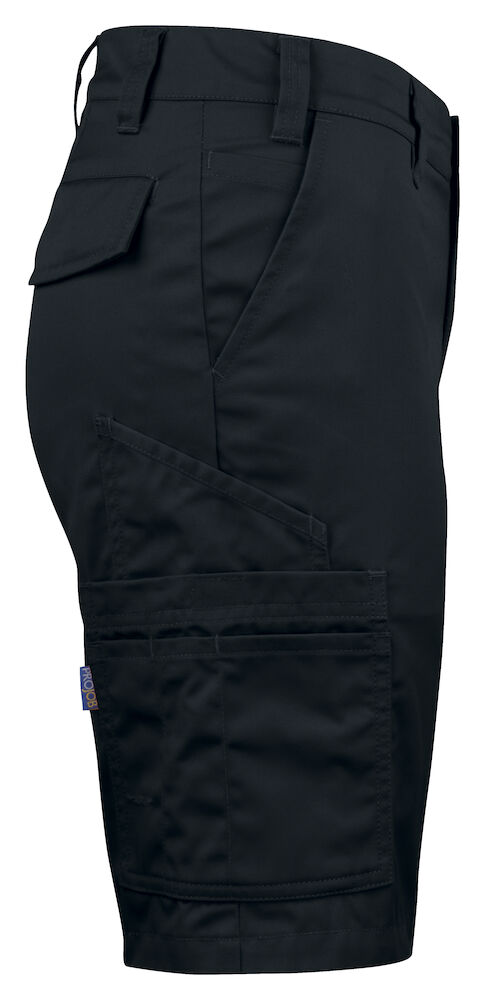 Leichte,modern geschnittene Shorts für Damen mit zwei Beintaschen und Gesässtaschen mit Patte. Die linke Beintasche mit Patte und innen liegender Handy Tasche. Die rechte Tasche bietet Platz für Mobiltelefon, Schreibgeräte, Dokumente und Meterstab. Farben Rot (35), Grün (66) und Himmelblau (53) mit Schwarzem Kontrast.