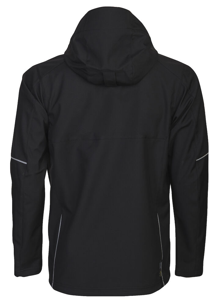 3 lagige, wind- und wasserabweisende Softshell Jacke. Zwei Brusttaschen; die linke mit innen liegender Handytasche. ID-Kartenhalter. Zwei Seitentaschen mit Reissverschluss. Ärmeltasche am linken Arm. Innentasche links mit Öffnung für Kopfhörer. Ventilations Reissverschlüsse unter den Achseln. Kordelzug am Bund. Justierbare Ärmelenden. Verlängerter Rücken für einen besseren Komfort. Reflektierende Paspelierung auf den Ärmeln und auf dem Rücken. Verstellbare, abnehmbare Kapuze. Weiches Fleece Futter im Kragen.