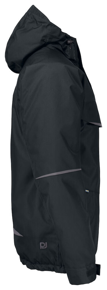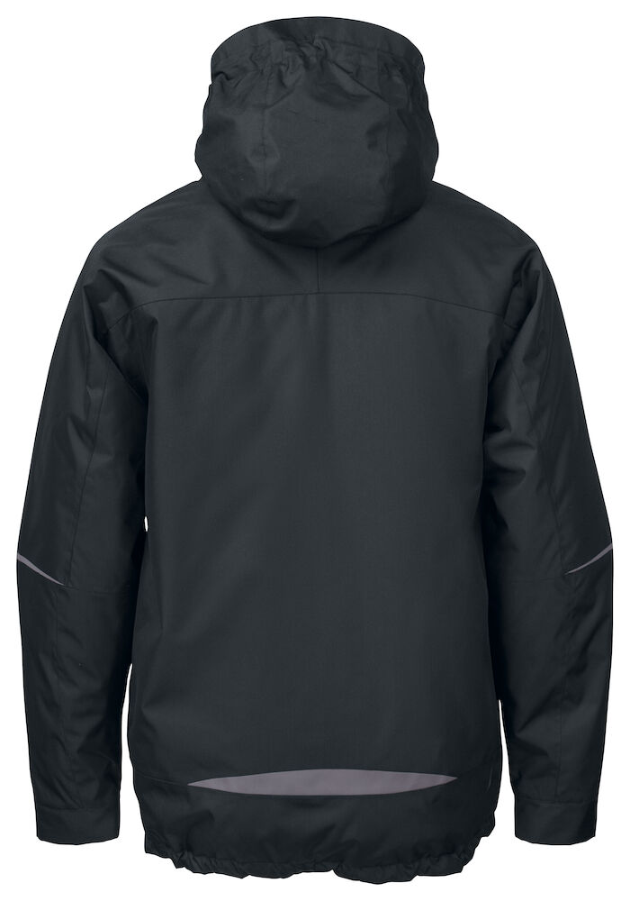 Wind- und wasserdichter Parka, atmungsaktiv und mit verschweissten Nähten. Stehkragen und abnehmbare Kapuze. Seitentaschen mit Patte. Zwei grosse Brusttaschen mit Patte. Bis zum Kragen durchgehender Reissverschluss, geschützt durch Knopfleiste mit verborgenen Druckknöpfen. Reflektierende Elemente vorne und am Rücken für bessere Sichtbarkeit. Ärmelbündchen mit Klettverschluss. Einhand Reissverschluss an der Seite. Verstellbare Taillenweite. Reissverschluss auf der Innenseite für Druck oder Stickerei.