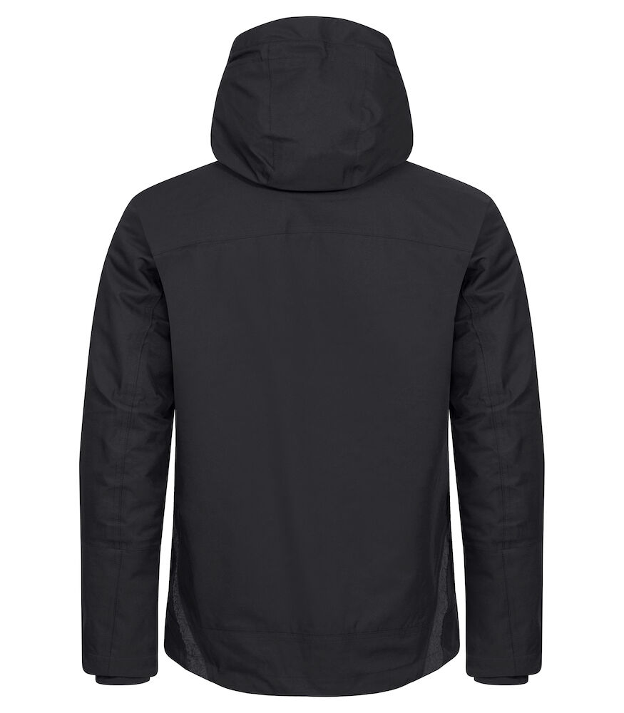 Wind- und wasserfeste Jacke mit abnehmbarer Innenjacke. Hauptjacke mit verschweissten Nähten, Zwei-Wege-Reissverschluss vorne mit Wind- und Regenschutzleiste aussen sowie Druckknopfverschluss. Vertikale Brusttaschen mit wasserfestem Reissverschluss, links mit Schlaufe für ID-Kartenhalter. Geräumige Seitentaschen. Abnehmbare Kapuze, auf zwei Arten verstellbar mit Kordelzug. Verstellbarer Bund mit Kordelzug. Verstellbare Klettverschlussbündchen, innere Bündchen mit Daumenloch.