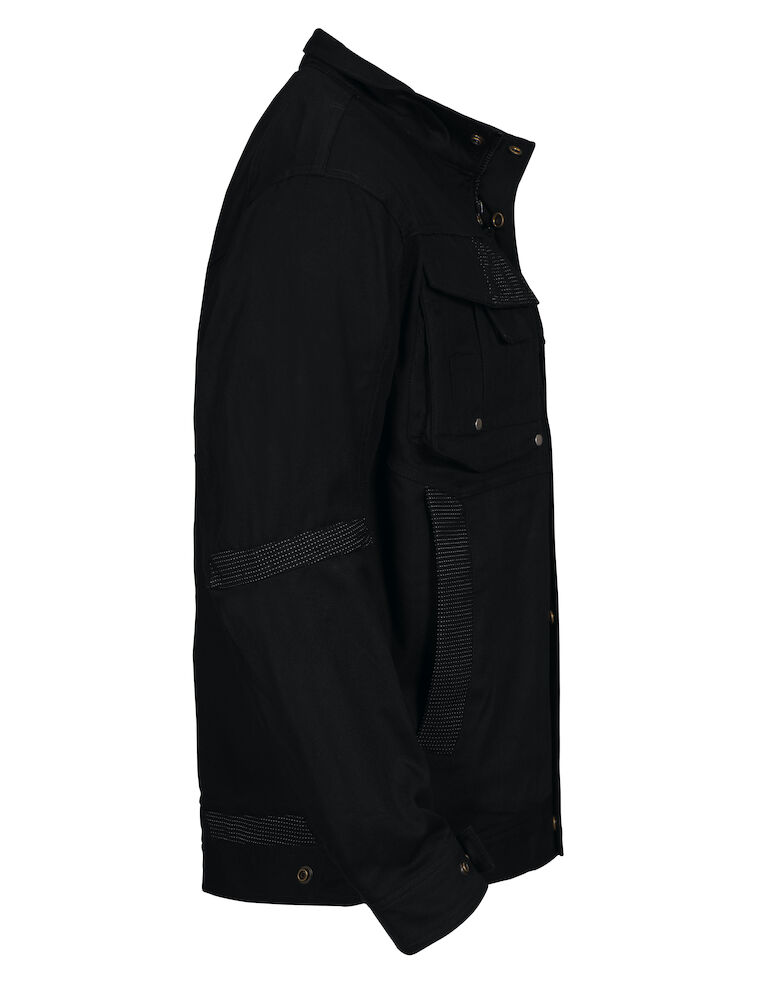 Wiederstandsfähige Canvas Jacke. Zwei Brusttaschen, davon die rechte mit Handy- und Stiftefach und ID-Karten Halter. Die linke Tasche mit Reissverschluss. Reissverschluss bis hoch zum Kragen. Zwei abgeschrägte Fronttaschen. Bund und Ärmelbündchen verstellbar. Vorgeformte Ärmel und verlängerter Rücken. Innentaschen mit Dokumentenfach. Reflektierende Cordura Applikationen.