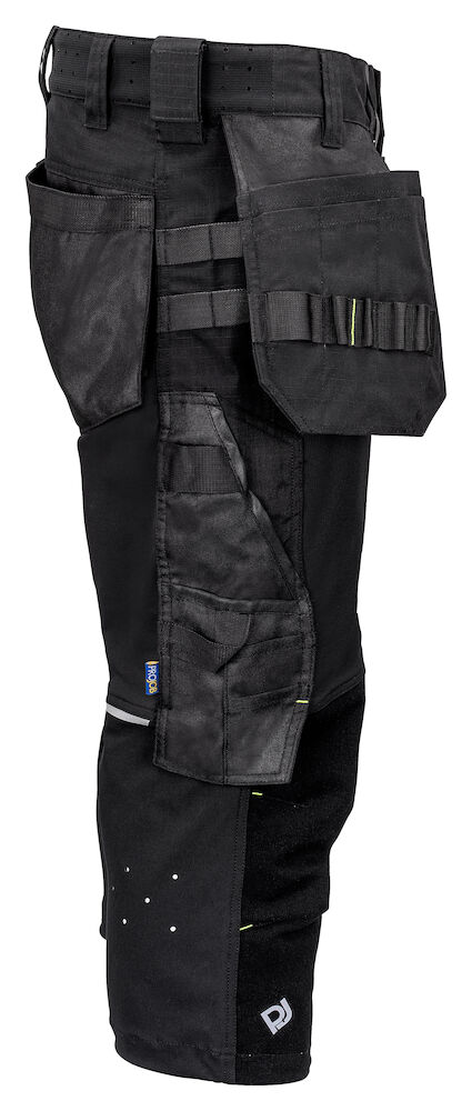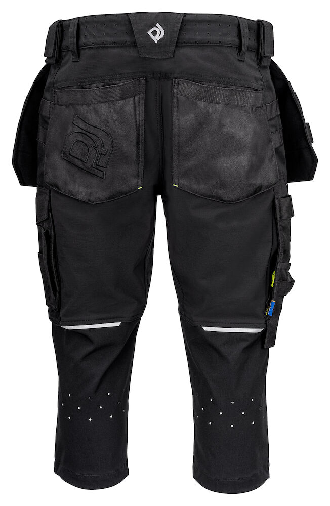 Modern geschnittene Piratenhose aus vollem Stretch für maximale Bewegungsfreiheit und Komfort. 4-Wege Stretch über Oberschenkel und Gesäss, 2-Wege Stretch auf der Rückseite der Knie. Die Seiten am Bund sind nicht in Stretch, um der Hose Stabilität zu verleihen. Belüftungsöffnungen mit Reissverschlüssen an beiden Beinseiten mit Mesh Futter, ausserdem Belüftung in der Taille und an den Kniekehlen. Beintaschen, auf der linken Seite eine Tasche für Werkzeug und Stifte, ausserdem eine Handytasche mit Magnetverschluss und eine Halterung zur Befestigung einer ID Karte. Auf der rechten Seite Metertasche und Tasche für Werkzeug mit Messerknopf. Möglichkeit zur Befestigung des MOLLE Systems auf beiden Seiten, zusätzlich können Hammerschlaufen mit Klettverschluss angebracht werden. Reflektierende Details für erhöhte Sichtbarkeit. Vorgeformte Knie. Innentaschen für Knieschützer, verstellbar in zwei Höhenstufen. Die Knie sind mit Kevlar Stretch verstärkt, um Haltbarkeit und Komfort zu erhöhen.