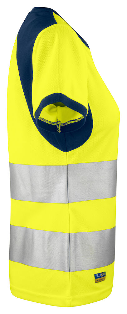 T-Shirt aus Funktionsmaterial und elastischen Reflektorstreifen. Rundhals mit verstärktem Nackenband. Mesh Einsätze im Achselbereich und am oberen Rücken in Kontrastfarbe. Das funktionelle Material transportiert Feuchtigkeit schnell weg von der Haut. Absolut knitterfrei und kein Einlaufen bei der Wäsche.