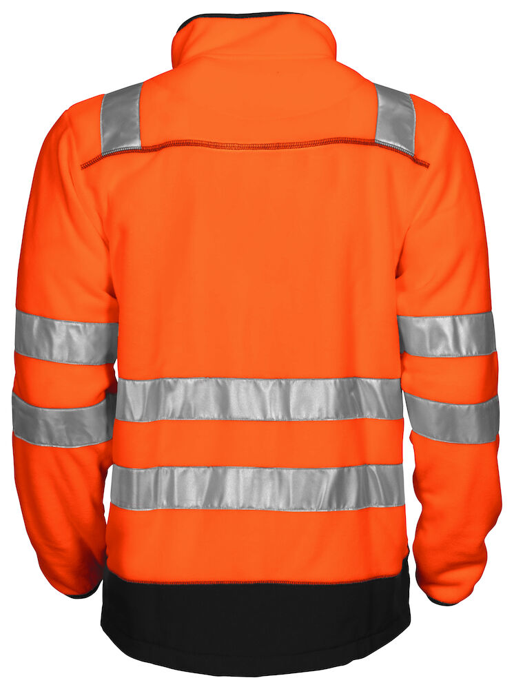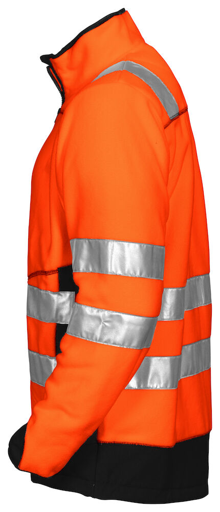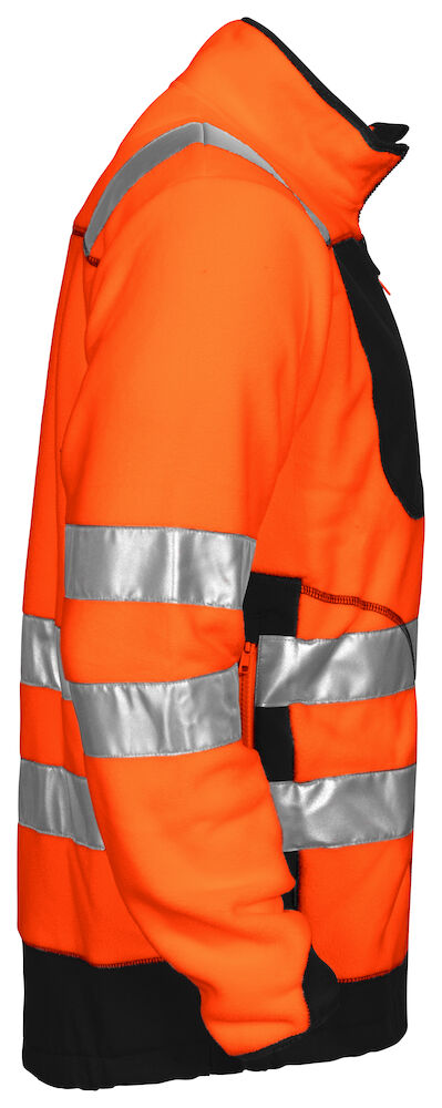 Jacke aus anti-pilling behandeltem Polarfleece. Durchgehender Reissverschluss bis hinauf zum Kragen mit Kinnschutz. Brusttasche mit Softshell gearbeitet. Softshell Verstärkungen am Bund, den Ärmelbündchen und den Seitentaschen. Vorgeformte Ärmel mit Daumenloch.