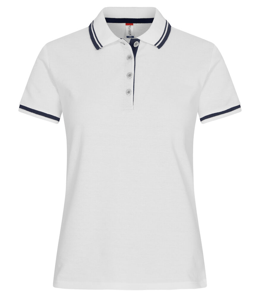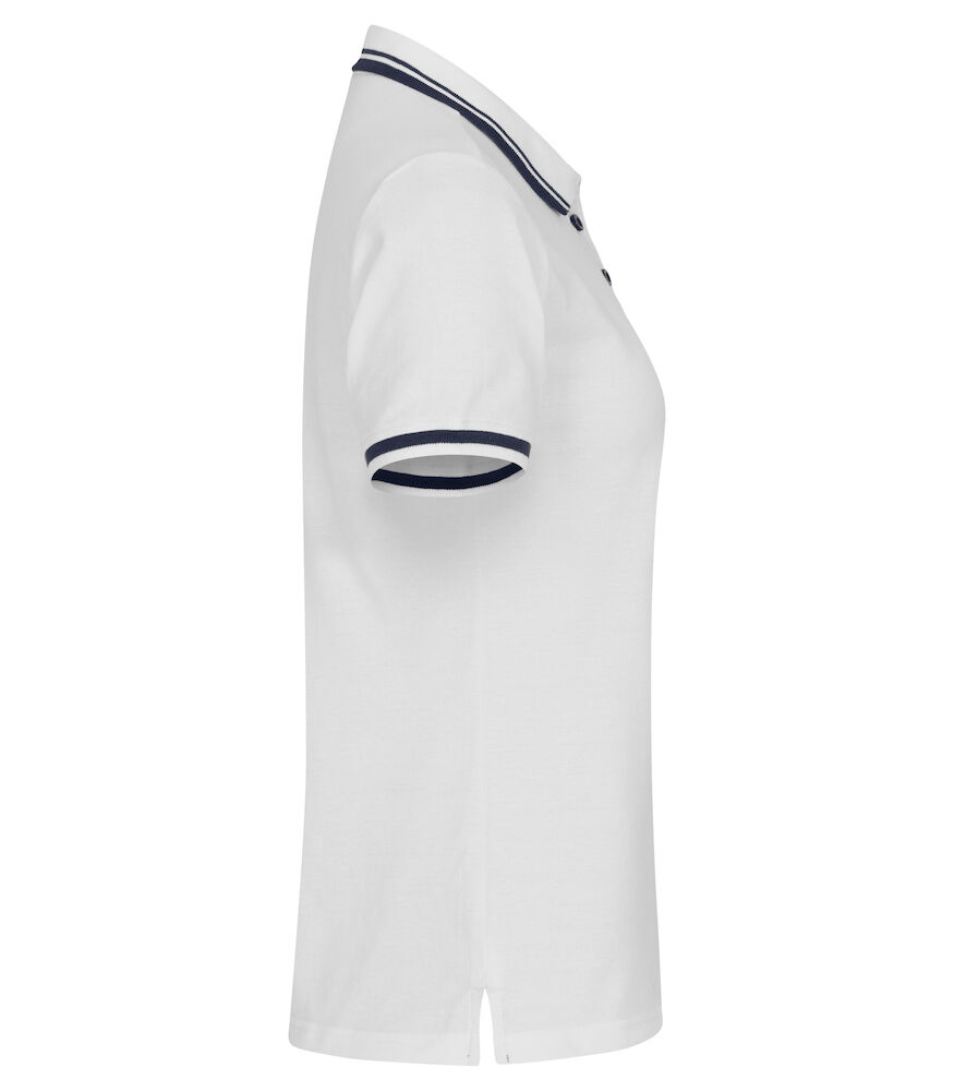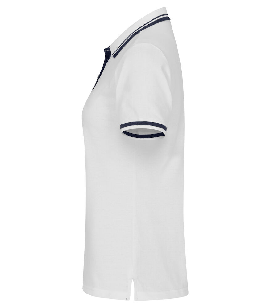 Damen-Poloshirt mit farbigem Kontraststreifen am Kragen und an den Ärmeln. Aufwendig gestaltete Seitenschlitze und vier Ton-in-Ton-Knöpfe. Verstärktes Nackenband und eine leicht abnehmbare Etikette für Rebranding. Dieser Stil passt perfekt zu Austin, Conrad und Amarillo.