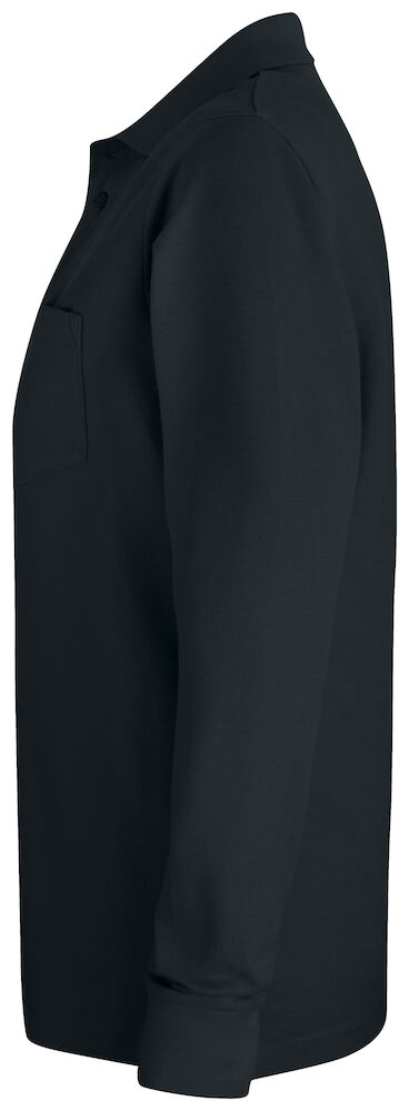 Ein Langarm Basic Polo Shirt mit Brusttasche und moderner Passform. Nackenband und drei Knöpfe farblich abgestimmt.