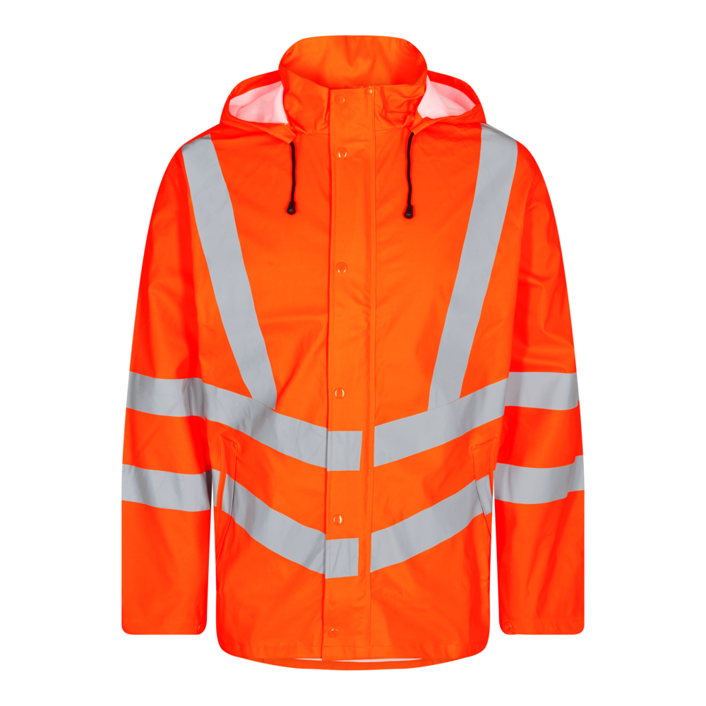 Die F. Engel Safety Warn Regenjacke Orange bietet idealen Schutz und hohe Sichtbarkeit bei nassem Wetter. Diese Jacke wurde speziell für die Anforderungen von Arbeitern entwickelt, die bei schlechtem Wetter im Freien arbeiten müssen, und bietet gleichzeitig Komfort und Schutz vor den Elementen.
