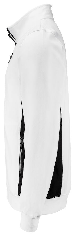 Doubleface Sweat Cardigan mit durchgehendem Reissverschluss. Saum und Bündchen aus Rippstrick. Kontrastfarbe an den Seiten. Seitentaschen mit Reissverschluss.