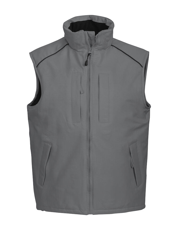 Gefüttertes Gilet aus wind- und wasserabweisendem Material. Zwei Brusttaschen, eine davon mit Tasche für Mobiltelefon oder MP3 Player und Öffnung für Kopfhörer. Zwei Innentaschen, eine davon mit Reissverschluss. Reflektierende, dunkle Paspelierung auf der Schulterpasse. Einhändig zu bedienender Kordelzug im Saum.