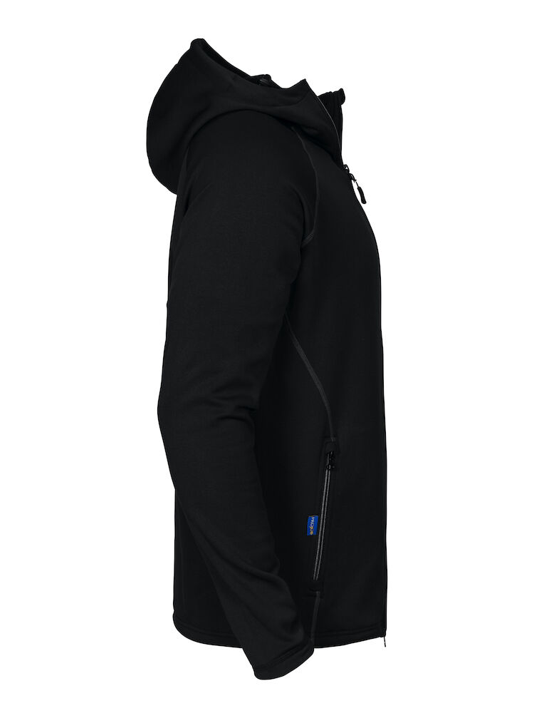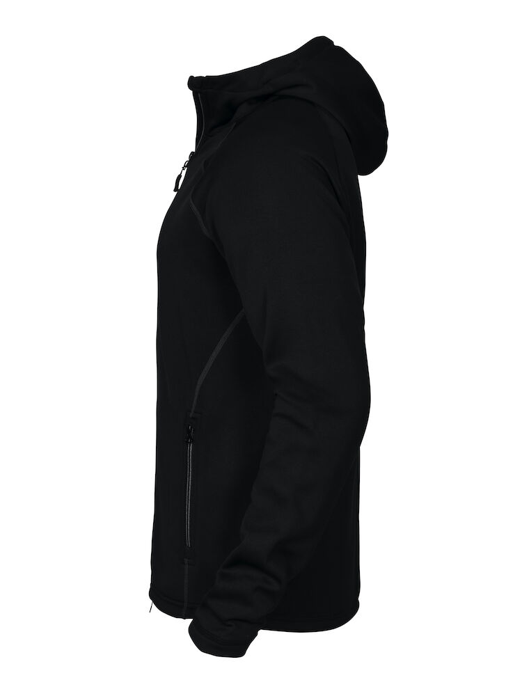Mikrofleece Jacke mit Kapuze. Funktionsmaterial für optimale Wärme, maximale Bewegungsfreiheit und Komfort. Eng anliegend geschnitten. Verstellbare Kapuze. Zwei Seitentaschen mit RV und zwei Innentaschen. Verstellbare Taille.