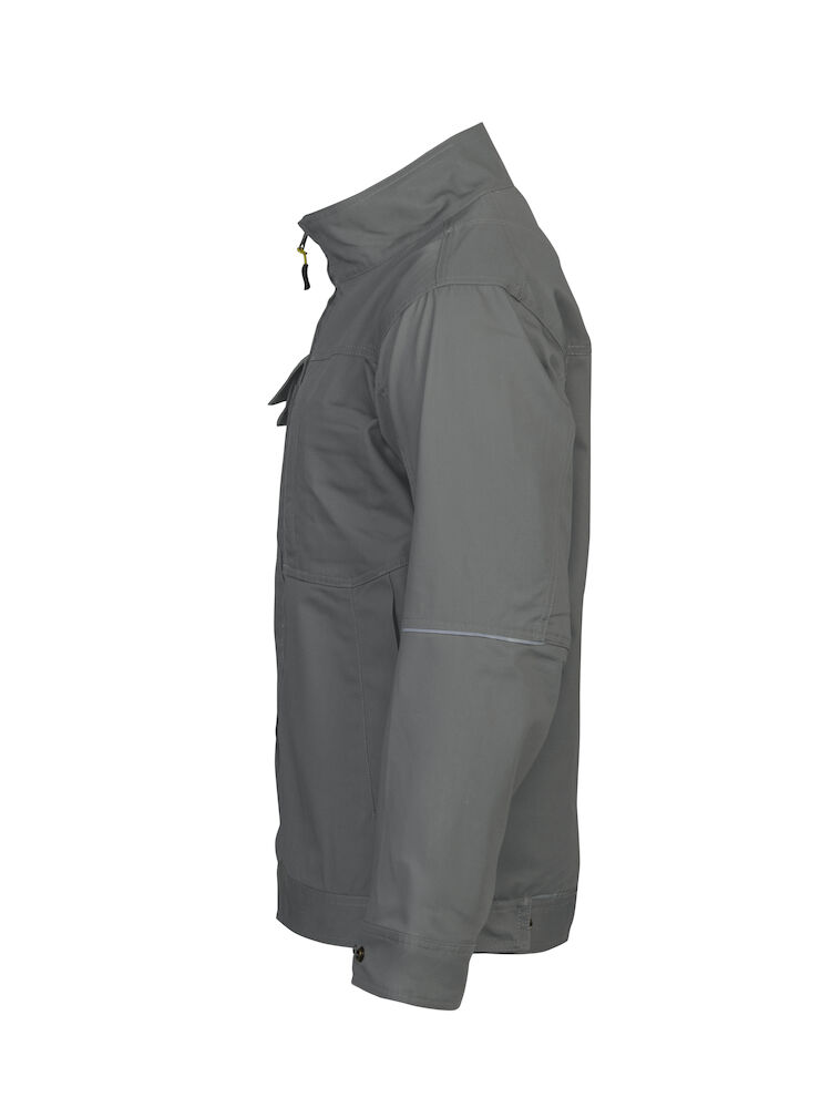 Jacke mit zwei Brusttaschen, davon die rechte mit Handy- und Stiftefach und ID-Karten Halter. Die linke Tasche mit Reissverschluss. Front Reissverschluss bis hoch zum Kragen. Schräge Seitentaschen. Bund und Ärmelbündchen verstellbar. Verlängerter Rücken. Innentaschen mit Dokumentenfach.