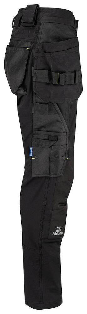 Modern geschnittene Bundhose aus vollem Stretch, die ein Maximum an Bewegungsfreiheit und Komfort bietet. Die Seiten am Bund sind nicht in Stretch, um der Hose Stabilität zu verleihen. Belüftung auf der Rückseite der Taille. Geräumige Beintaschen auf beiden Seiten. Linke Beintasche für Werkzeug und Stifte, ausserdem eine Handytasche mit Magnetverschluss und eine Halterung zur Befestigung ID Karte. Auf der rechten Seite Metertasche und Tasche für Werkzeug mit Messerknopf. Breitere Gürtelschlaufe auf der Rückseite, um Druck vom Gürtel zu vermeiden. Gesässtaschen aus Cordura®, eine mit Klappe und Magnetverschluss. Vorgeformte Knie. Innentaschen für Knieschützer, in zwei Höhen einstellbar. Holstertaschen, Beinabschlüsse und Knie sind mit Cordura® verstärkt, um die Haltbarkeit zu erhöhen. Möglichkeit zur Befestigung von MOLLE Systemen an beiden Seiten.