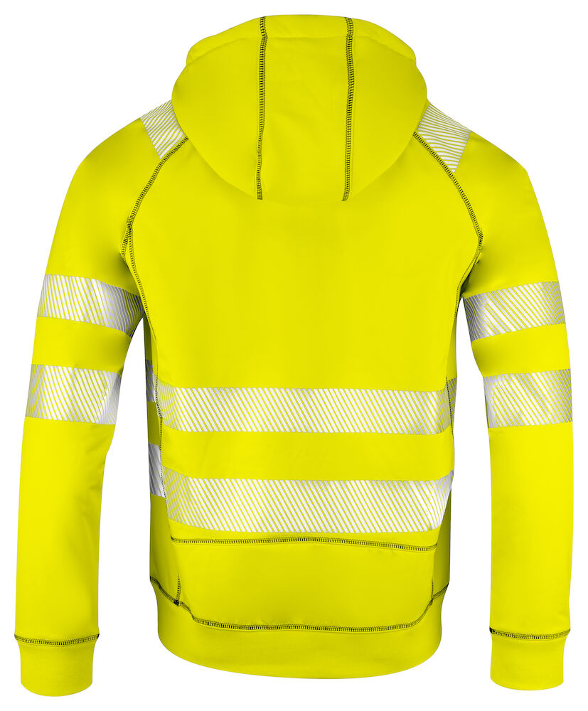 Kapuzenjacke mit Pelzfaser auf der Innenseite, welches die Jacke besonders warm macht. Seitentaschen mit Reissverschluss. Vertikale Brusttasche mit Reissverschluss. Zwei Innentaschen. Verstellbare Kapuze. Rippstrickbündchen an Saum und Ärmeln. Segmentierte Reflektoren von 3M, zusätzlich Reflektoren über den Schultern.