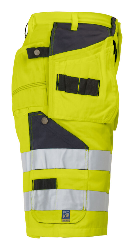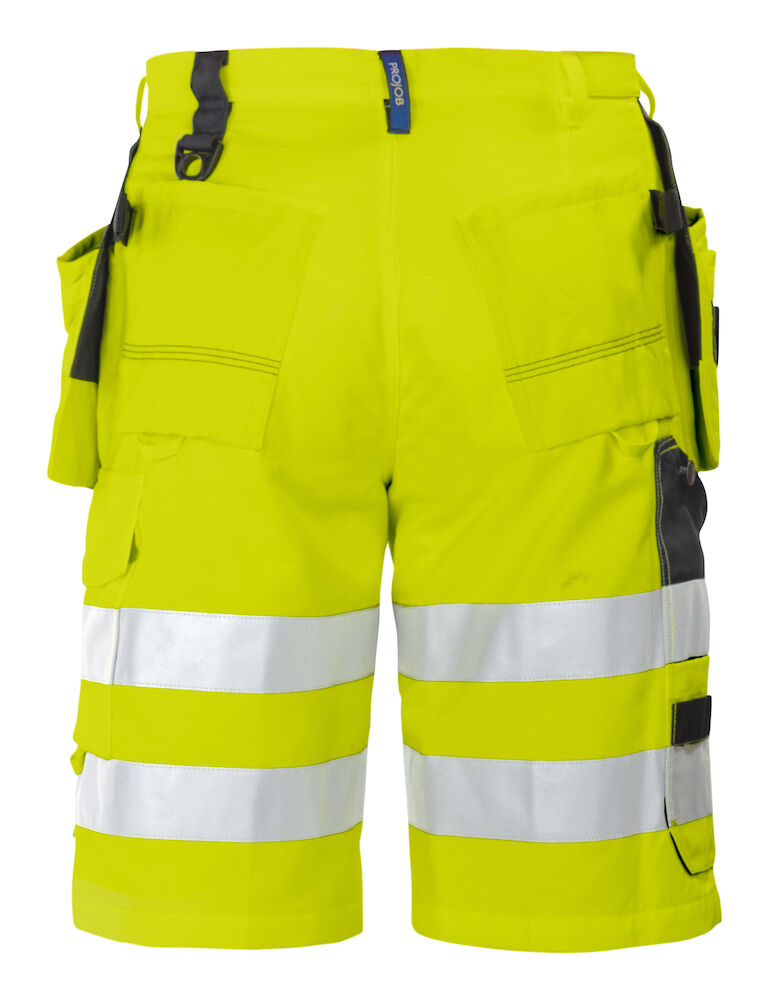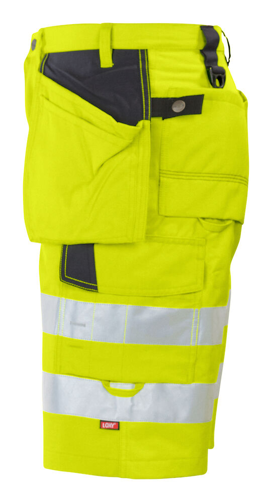 Gerade geschnittene Shorts mit zwei freihängenden Hängetaschen, die in die Seitentaschen eingesteckt werden können; eine mit Zusatztaschen und eine mit Werkzeugschlaufen. Die Hängetaschen sind mit Polyamid verstärkt. Beintasche mit Taschen für Mobiltelefon, Schreibgeräte und Werkzeug. Zwei verstellbare Hammerhalter. Zwei D-Ringe. Metertasche mit Werkzeugschlaufen und Knopf. Extra grosse Gesässtaschen. DWR-C6 beschichtet, so dass das Material wasser-, staub- und schmutzabweisend ist.