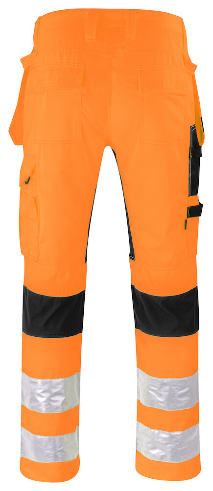 Bundhose mit grosser Flexibilität. Stretch Gewebe im Schritt und auf der Rückseite der Knie für mehr Komfort und Flexibilität. Holstertaschen, die in die Seitentaschen gesteckt werden können, auf der linken Seite, Tasche mit einer zusätzlichen Tasche und auf der rechten Seite Schlaufen für Werkzeuge und offene Taschen. Gesässtaschen mit Patte und Klettverschluss. Metertasche und Tasche für Werkzeuge mit Messerknopf. Zwei Hammerschlaufen, eine auf jeder Seite. Vorgeformte Knie mit Innentaschen für Knieschützer, in zwei Höhenstufen verstellbar. Verstärkungen in den Holstertaschen, der Zollstocktasche und über den Knien für erhöhte Haltbarkeit. Die Grössen C42-C64 können um 5 cm verlängert werden.