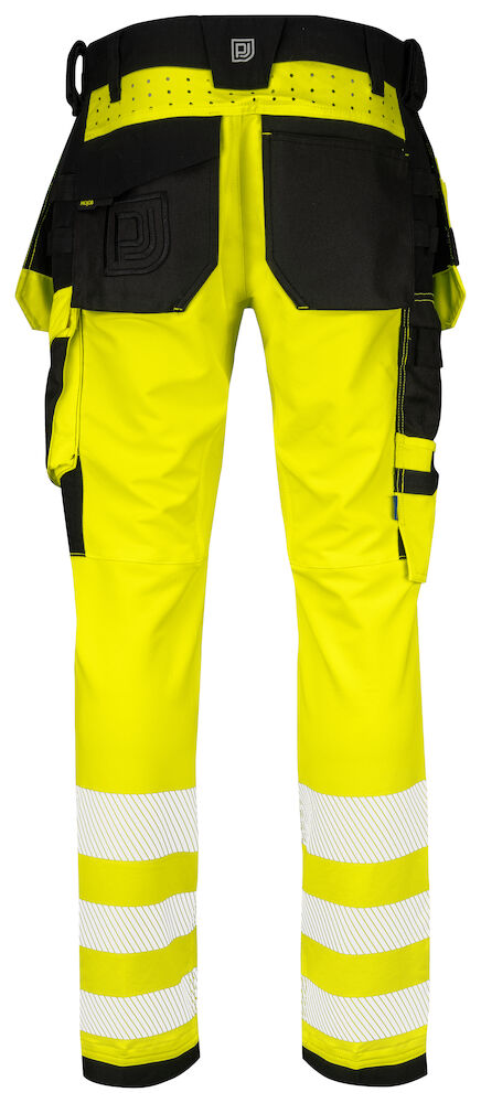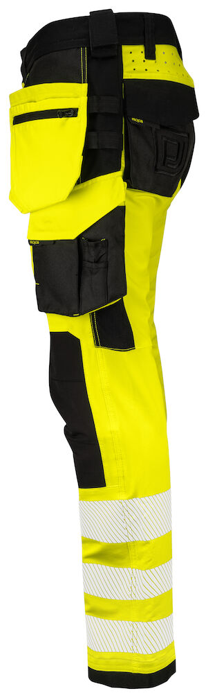 Modern geschnittene Bundhose aus vollem Stretch, die ein Maximum an Bewegungsfreiheit und Komfort bietet. Die Seiten am Bund sind nicht in Stretch, um der Hose Stabilität zu verleihen. Belüftung auf der Rückseite der Taille. Geräumige Beintaschen auf beiden Seiten. Linke Beintasche für Werkzeug und Stifte, ausserdem eine Handytasche mit Magnetverschluss und eine Halterung zur Befestigung ID Karte. Auf der rechten Seite Metertasche und Tasche für Werkzeug mit Messerknopf. Breitere Gürtelschlaufe auf der Rückseite, um Druck vom Gürtel zu vermeiden. Gesässtaschen aus Cordura®, eine mit Klappe und Magnetverschluss. Vorgeformte Knie. Innentaschen für Knieschützer, in zwei Höhen einstellbar. Holstertaschen, Beinabschlüsse und Knie sind mit Cordura® verstärkt, um die Haltbarkeit zu erhöhen. Möglichkeit zur Befestigung von MOLLE Systemen an beiden Seiten.