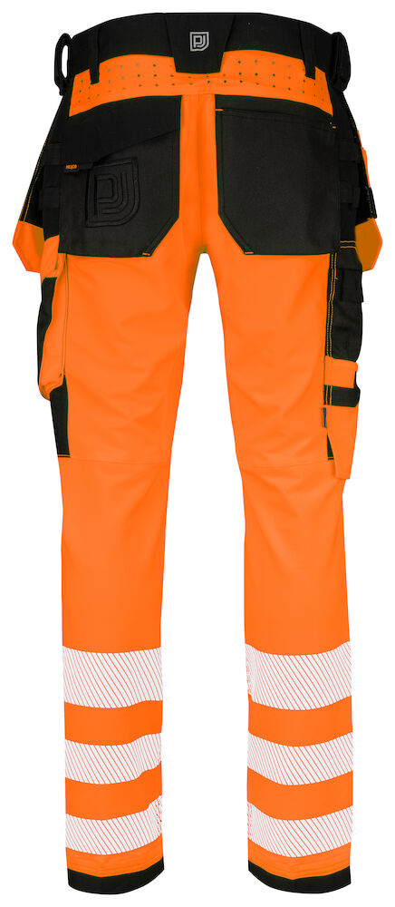 Modern geschnittene Bundhose aus vollem Stretch, die ein Maximum an Bewegungsfreiheit und Komfort bietet. Die Seiten am Bund sind nicht in Stretch, um der Hose Stabilität zu verleihen. Belüftung auf der Rückseite der Taille. Geräumige Beintaschen auf beiden Seiten. Linke Beintasche für Werkzeug und Stifte, ausserdem eine Handytasche mit Magnetverschluss und eine Halterung zur Befestigung ID Karte. Auf der rechten Seite Metertasche und Tasche für Werkzeug mit Messerknopf. Breitere Gürtelschlaufe auf der Rückseite, um Druck vom Gürtel zu vermeiden. Gesässtaschen aus Cordura®, eine mit Klappe und Magnetverschluss. Vorgeformte Knie. Innentaschen für Knieschützer, in zwei Höhen einstellbar. Holstertaschen, Beinabschlüsse und Knie sind mit Cordura® verstärkt, um die Haltbarkeit zu erhöhen. Möglichkeit zur Befestigung von MOLLE Systemen an beiden Seiten.