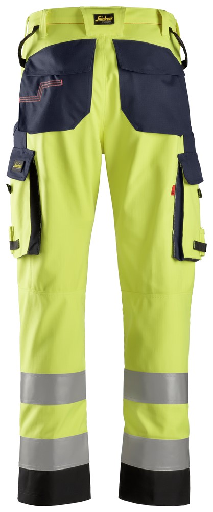 Warnschutz-Arbeitshose mit normaler Passform, die zuverlässig in risikoreichen Arbeitsbereichen und in gefährlichen Umgebungen schützt. Schutzhose für zertifizierten Schutz beim Schweißen sowie antistatische Eigenschaften, einen integrierten Hitze- und Flammschutz und Schutz vor Störlichtbögen. Die Hose ist außerdem mit dem KneeGuard™-System und aramidverstärkten Knien und Unterschenkeln ausgestattet - für zusätzliche Strapazierfähigkeit sowie zuverlässigen Knie- und Schienbeinschutz. Warnschutzklasse 2.