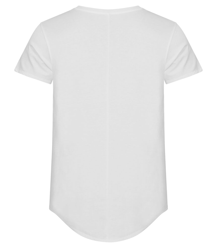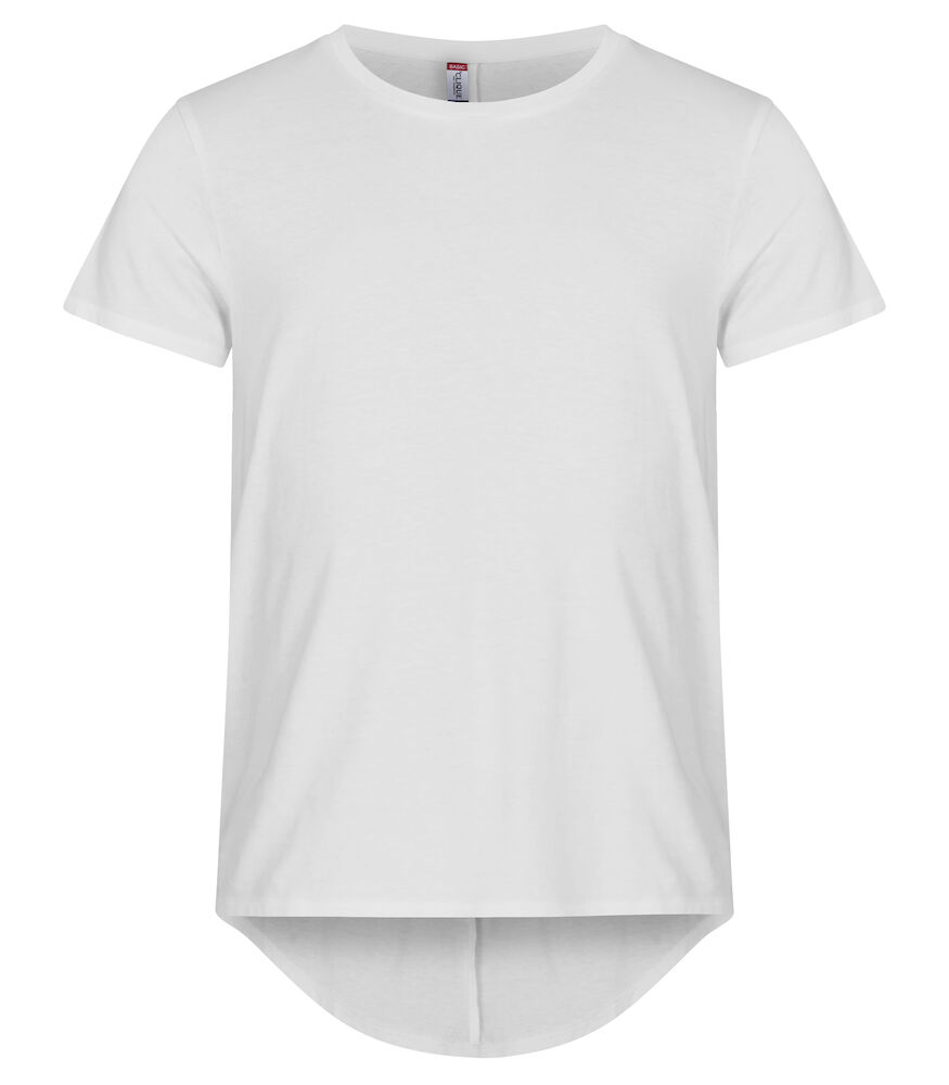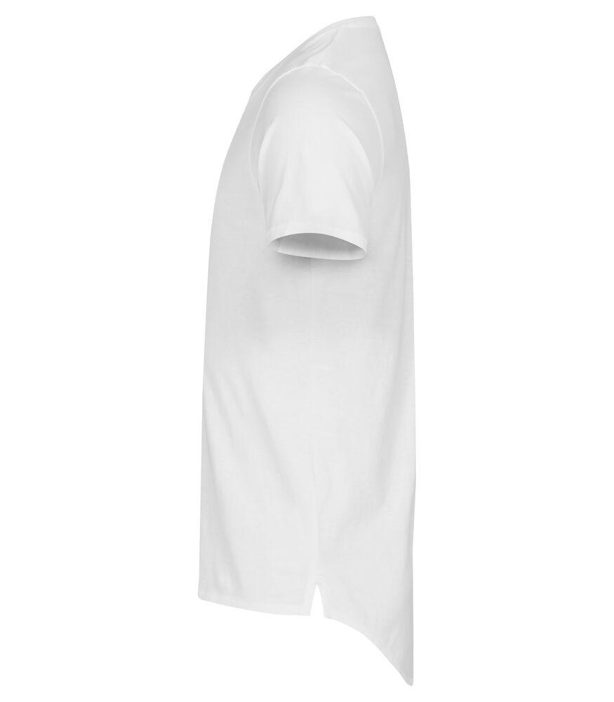 Lässiges Herren-T-Shirt mit längerem Rücken mit vertikaler Naht. Kragen mit doppeltem Shellmaterial. Verstärktes Nackenband und ein leicht abnehmbares Etikett für Rebranding.