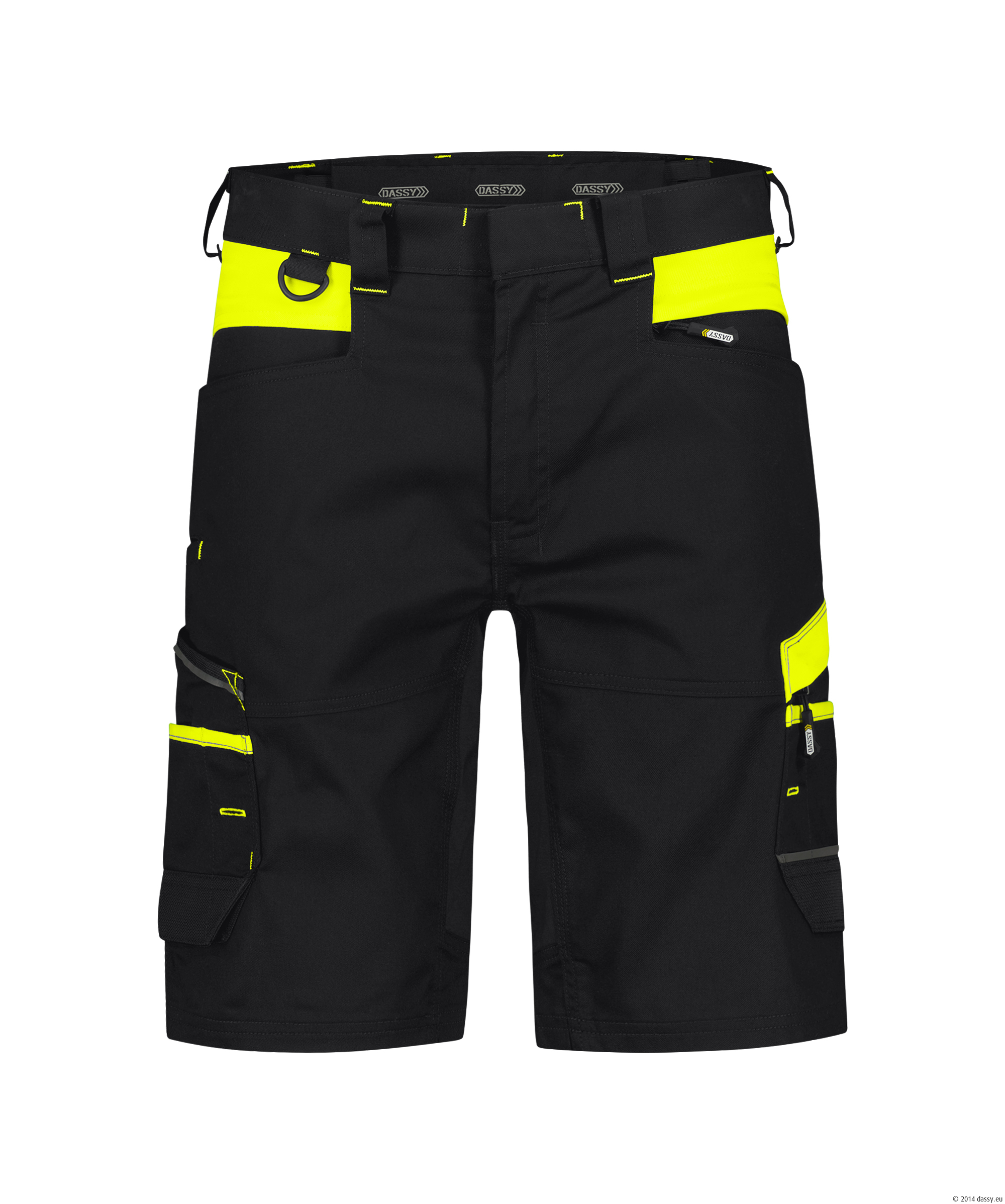 Die DASSY® Manilla Stretch-Arbeitsshorts sind nicht nach EN ISO 20471 zertifiziert, bieten jedoch dennoch hohe Sichtbarkeit und Komfort für Ihre Arbeit im Freien.