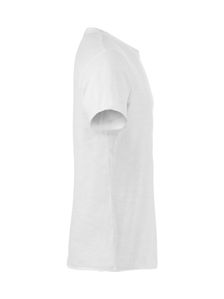 Modisch geschnittenes T-Shirt aus Slub Yarn Baumwoll Jersey. Spezielle Kragen- und Ärmelabschlüsse.