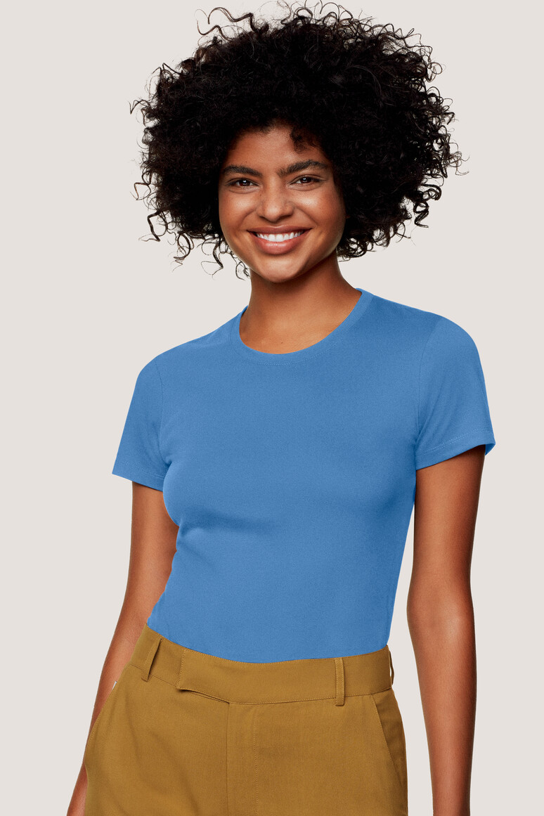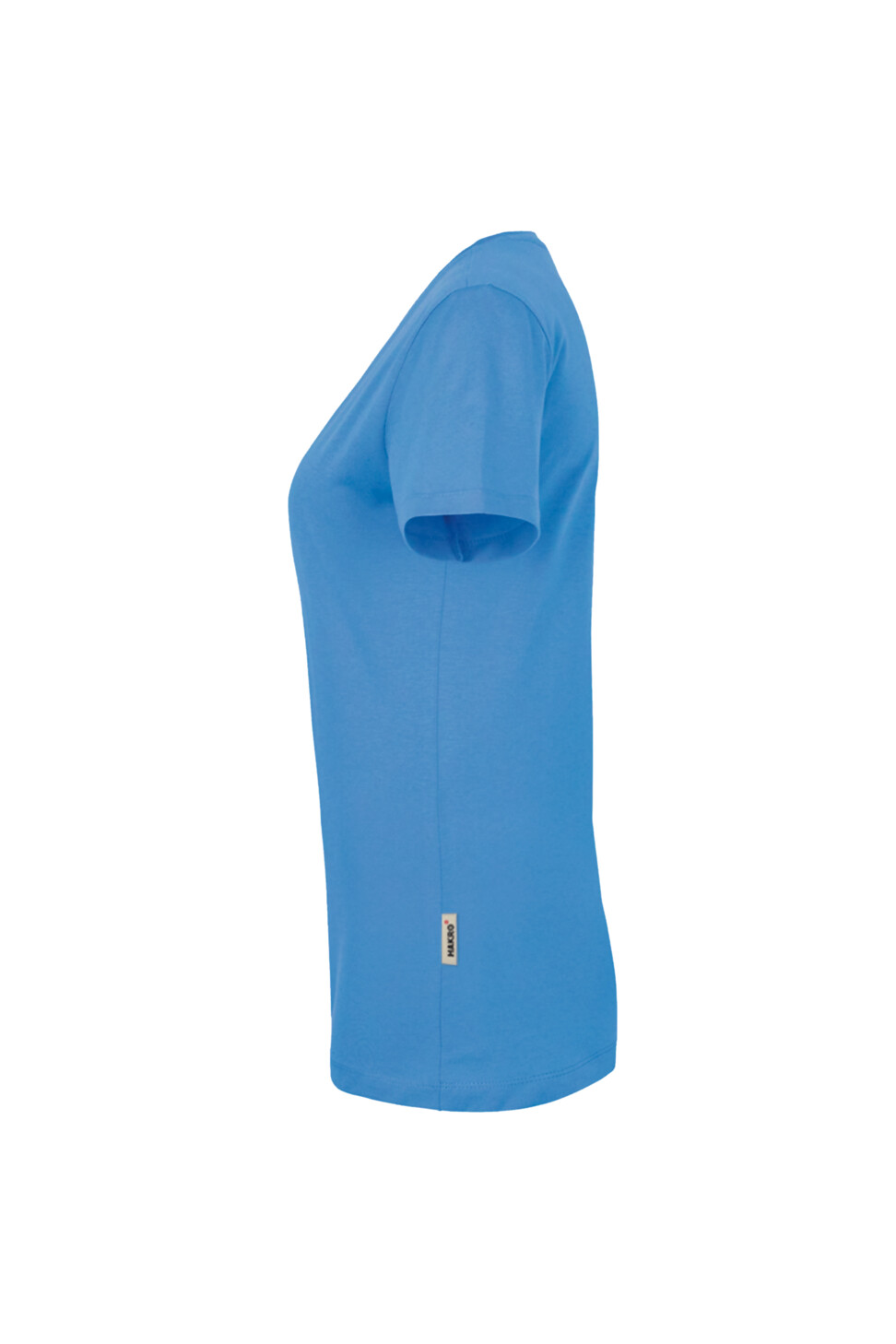 Dieses klassische T-Shirt ist feminin geschnitten mit Rundhalsausschnitt, modisch schmalem Halsbündchen und Nackenband. Es besteht aus einer feinen, mittelschweren Single Jersey Qualität aus langstapeliger, gekämmter und ringgesponnener CmiA Baumwolle. Das gewebte HAKRO Nackenlabel aus hochwertigem Kettsatin mit ultraschallgeschnittenen Bandkanten sorgt für höchsten Tragekomfort. An der linken Seitennaht ist ein gewebtes HAKRO Flaglabel angebracht.