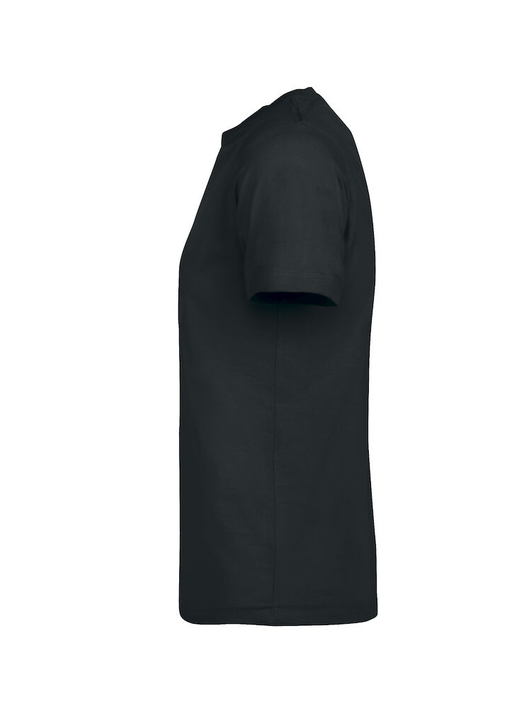 Figurnah geschnittenes, modernes T-Shirt mit Verstärkungen der Schulternähte und Doppelnähten am Halsbündchen. Bündchen mit Elasthan und mit vierlagigem Nackenbündchen für mehr Formstabilität. Herren ohne Seitennähte, bei den Damen mit Seitennähten.