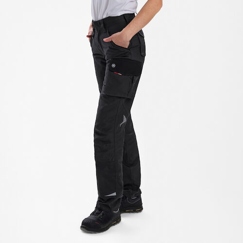 Die F. Engel Galaxy Damen Bundhose wurde speziell für Frauen entwickelt und bietet eine ergonomische Passform sowie hohen Komfort. Der Gummizug am Rücken sorgt dafür, dass die Hose gut sitzt und an ihrem Platz bleibt. Diese Hose ist mit vielen funktionellen Taschen ausgestattet, darunter eine Schenkeltasche mit Reissverschluss und eine Zollstocktasche mit freihängendem Boden.