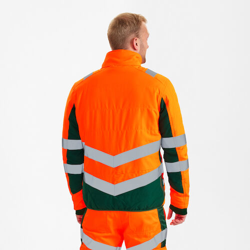 Die F. Engel Safety Steppjacke zeichnet sich durch ihr robustes, mechanisch dehnbares Ripstop-Gewebe aus, das einen modernen Schnitt und hohen Tragekomfort bietet. Diese Jacke ist ideal für den Einsatz in Arbeitsumgebungen, in denen sowohl Schutz als auch Bewegungsfreiheit erforderlich sind.