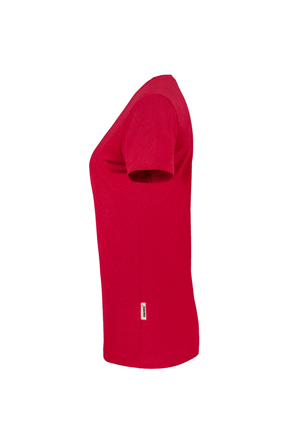 Dieses klassische T-Shirt ist feminin geschnitten mit Rundhalsausschnitt, modisch schmalem Halsbündchen und Nackenband. Es besteht aus einer feinen, mittelschweren Single Jersey Qualität aus langstapeliger, gekämmter und ringgesponnener CmiA Baumwolle. Das gewebte HAKRO Nackenlabel aus hochwertigem Kettsatin mit ultraschallgeschnittenen Bandkanten sorgt für höchsten Tragekomfort. An der linken Seitennaht ist ein gewebtes HAKRO Flaglabel angebracht.