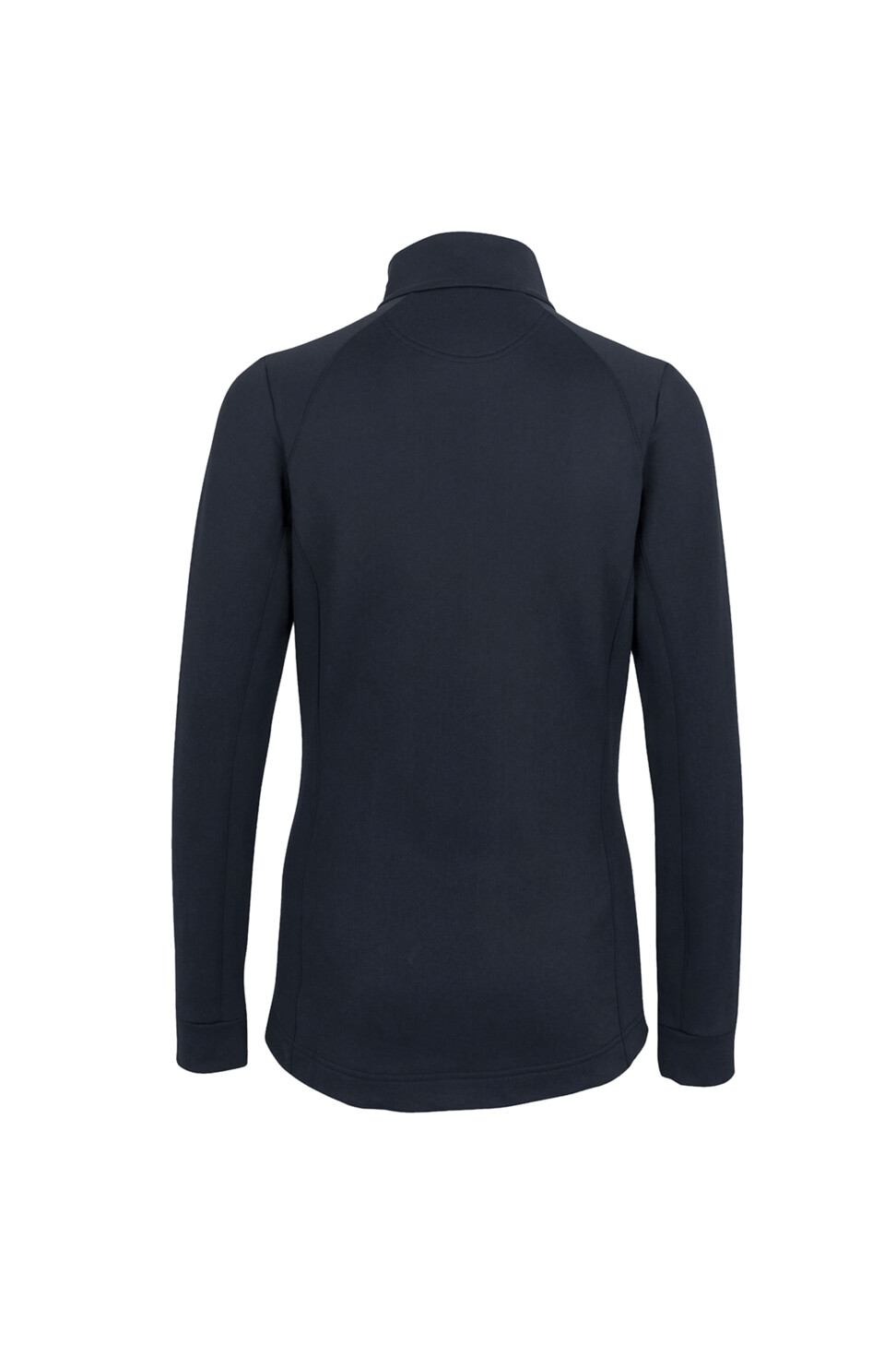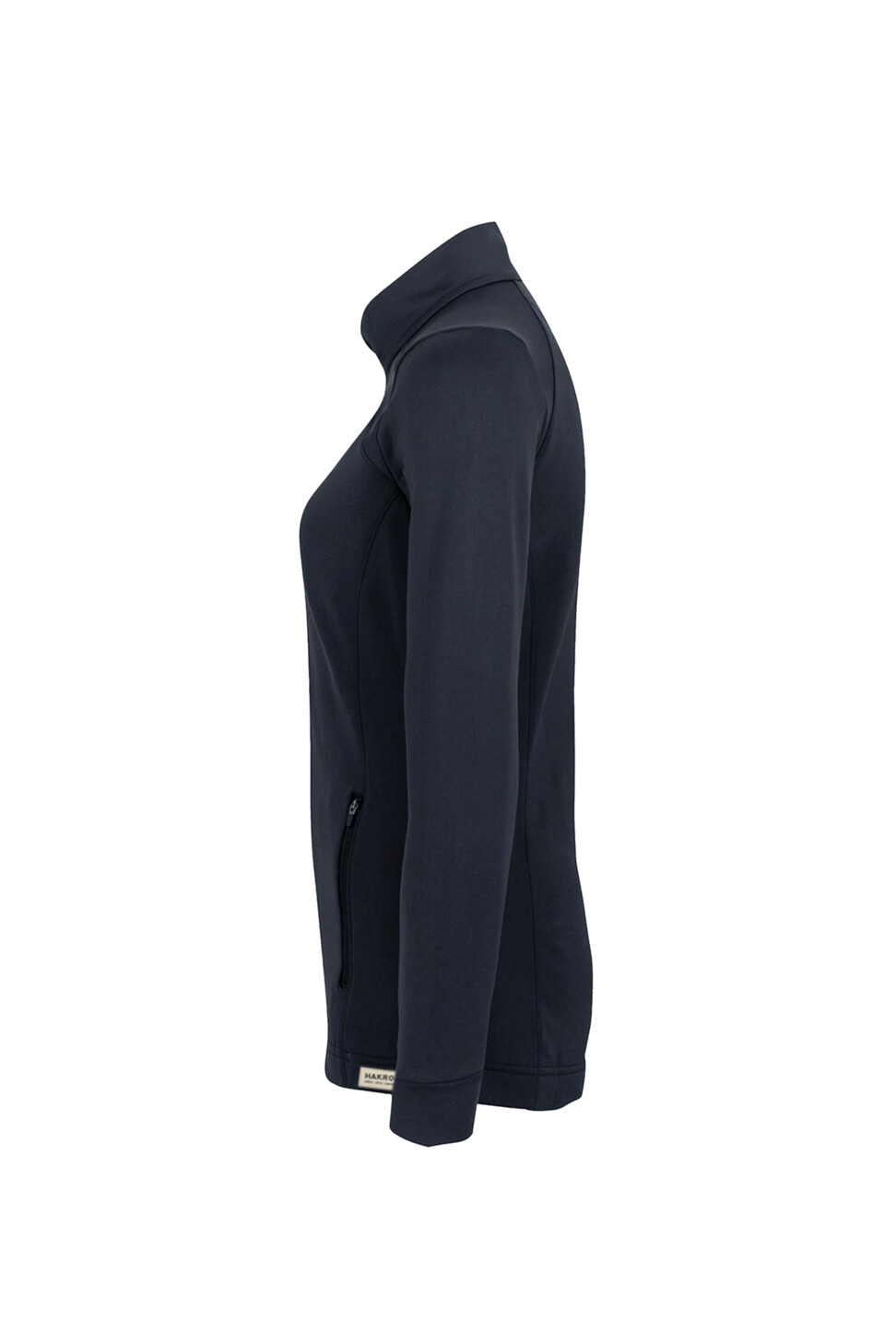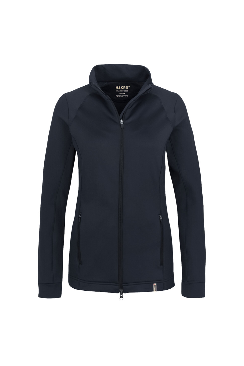 Diese sportlich geschnittene Jacke ist ideal für Damen, die Wert auf Funktionalität und Komfort legen. Das verlängerte, leicht abgerundete Rückenteil und die Teilungsnähte sorgen für eine perfekte Passform. Der Stehkragen und die Ärmelbündchen runden das Design ab.