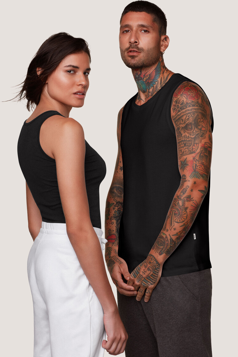 Dieses Trägershirt vereint schlichte Eleganz mit nachhaltigen Materialien und ist ein klimaneutrales Produkt.