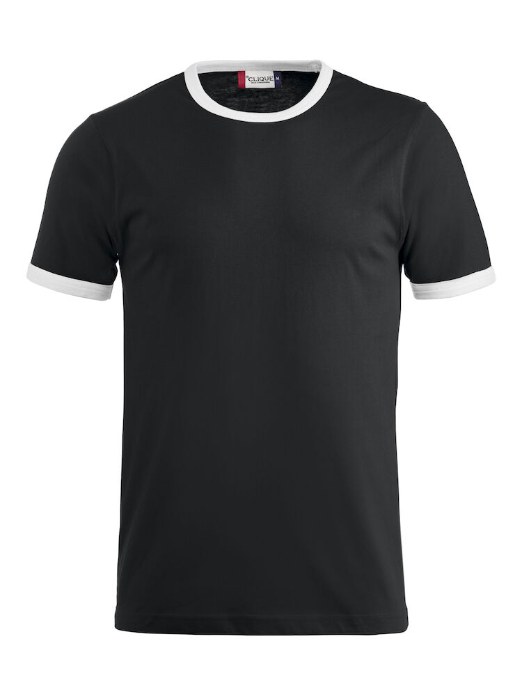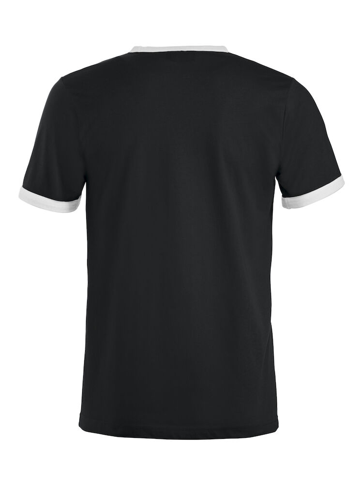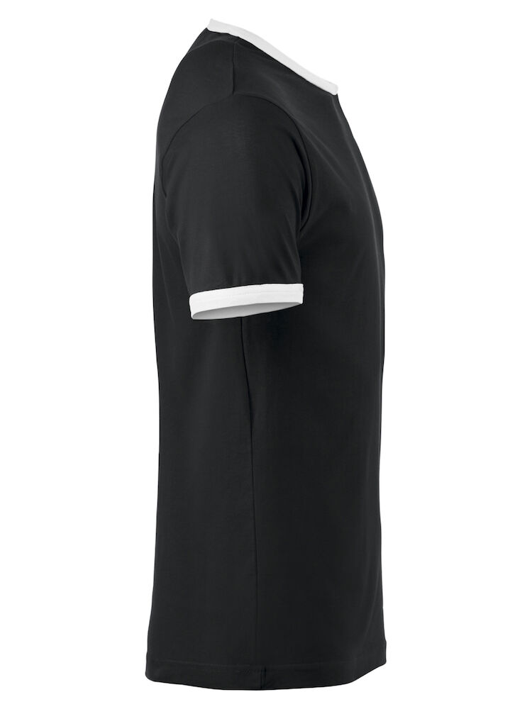 T-Shirt Bicolor. Kontrastfarbe an den Abschlüssen des Kragens und der Ärmelbündchen, Hals- und Ärmelabschlüsse mit Elasthan versetzt.