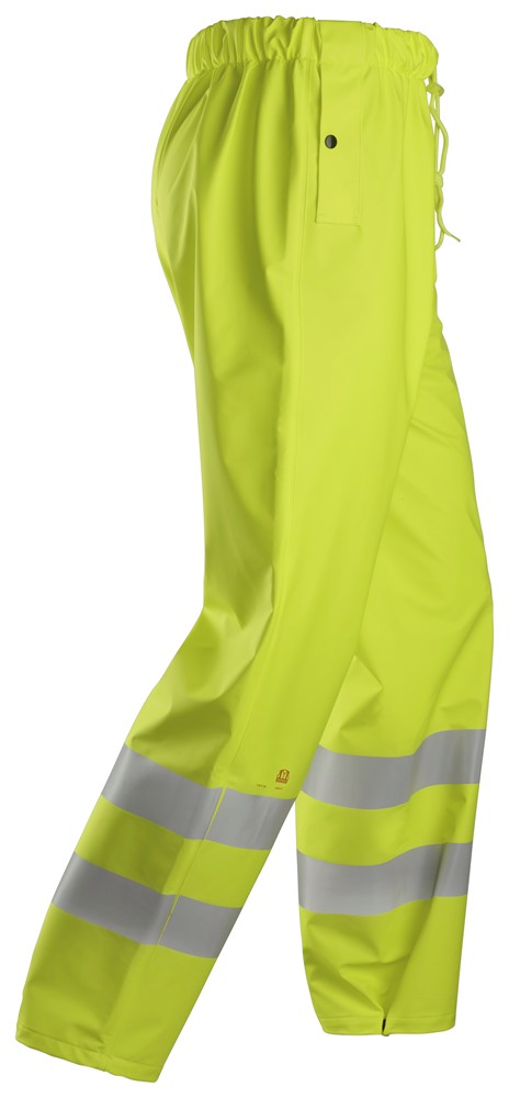 Warnschutz-Regenhose aus PU, die zum Schutz vor Wind und Regen über einer normalen Hose getragen werden kann. Reflektierende Details gewährleisten Warnschutzklasse 2 für verbesserte Sicht bei schlechten Lichtverhältnissen. Der niedrige Bund ermöglicht einen einfachen Zugriff auf die Holstertaschen der darunter getragenen Hose. Aus schwer entflammbarem Stoff hergestellt.