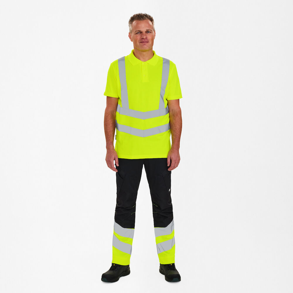Mit einem klassischen Knopfverschluss und einem robusten Rippstrickkragen bietet dieses Poloshirt einen professionellen Look und gleichzeitig die nötige Strapazierfähigkeit für den Arbeitsalltag. Die verstärkten Nähte tragen zusätzlich zur Langlebigkeit des Shirts bei und machen es zu einem zuverlässigen Begleiter in anspruchsvollen Arbeitsbedingungen. Es entspricht der Bekleidungsklasse 2, was für hohe Sichtbarkeit und Sicherheit am Arbeitsplatz sorgt.