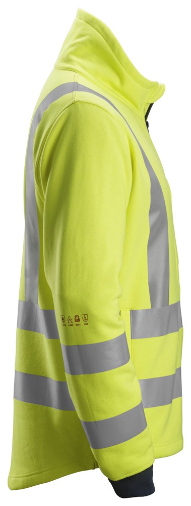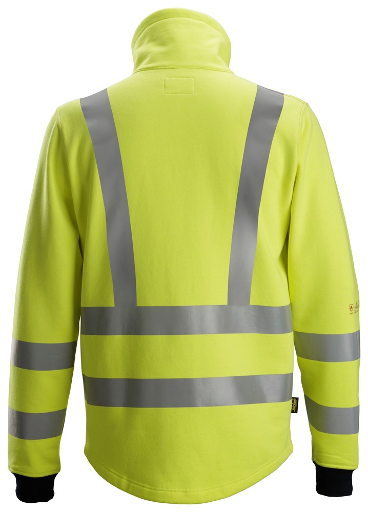 Sweatshirt mit durchgehendem Reißverschluss, das Schutz und Warnschutzfunktionalität in Risikobereichen bietet. Zertifizierter Schutz vor Hitze, Flammen und Störlichtbögen und die höchste Warnschutzklasse gewährleisten persönlichen Schutz in gefährlichen Umgebungen und bei schlechten Lichtverhältnissen.