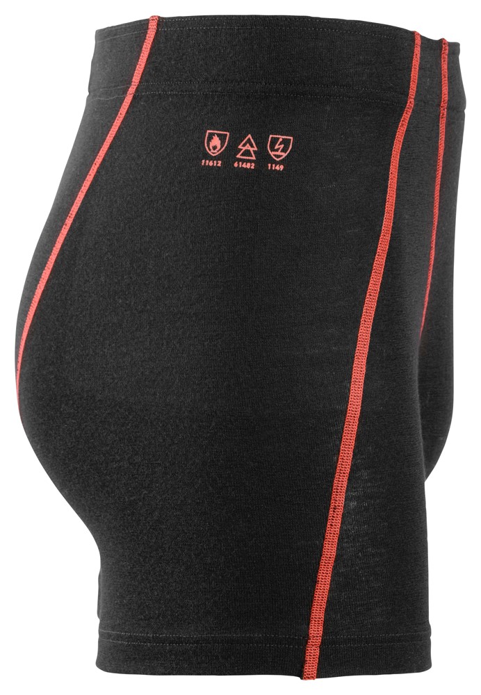 Retropants aus weicher Wolle und flammhemmender Viskose für Schutz und großen Tragekomfort zugleich. Wolle gewährleistet eine natürliche Feuchtigkeitsregulierung und gute Wärmeisolierung. Für Bekleidung mit kurzen Beinen oder Ärmeln gibt es keine Lichtbogenzertifizierung. Bei Arbeiten in Umgebungen mit möglichen Störlichtbögen empfehlen wir daher das Modell 9468 oder ähnliche mit langen Hosenbeinen aus demselben schützenden Material. Das Gewebe besitzt eine Lichtbogenfestigkeit bis zu ATPV 6,4 cal/cm2.
