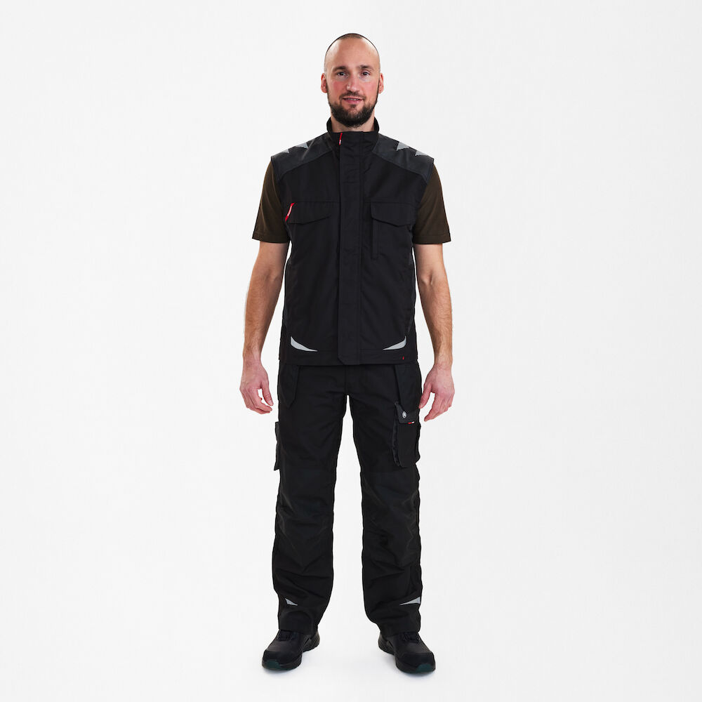 - viele funktionelle Taschen, u. a. Reißverschlusstasche auf der Brust