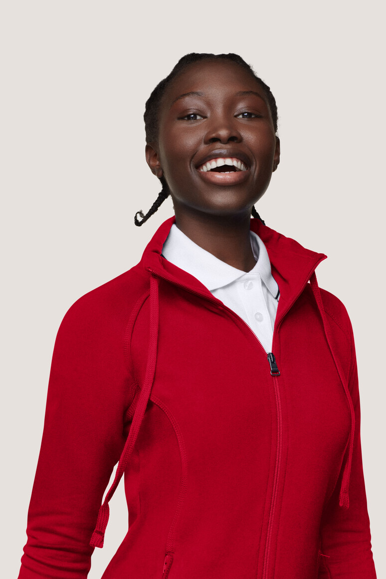 Die Jacke ist mit einem flauschigen Innenfutter (French Terry), einem Nackenband und zwei praktischen Seitentaschen mit Reissverschluss ausgestattet. Hergestellt aus einem pflegeleichten Baumwoll-Polyester-Gemisch erfüllt sie höchste Ansprüche an Tragekomfort und Langlebigkeit. Das gewebte HAKRO Nackenlabel aus hochwertigem Kettsatin mit weichen, ultraschallgeschnittenen Bandkanten und das gewebte HAKRO Flaglabel an der linken Seitennaht garantieren höchsten Tragekomfort.