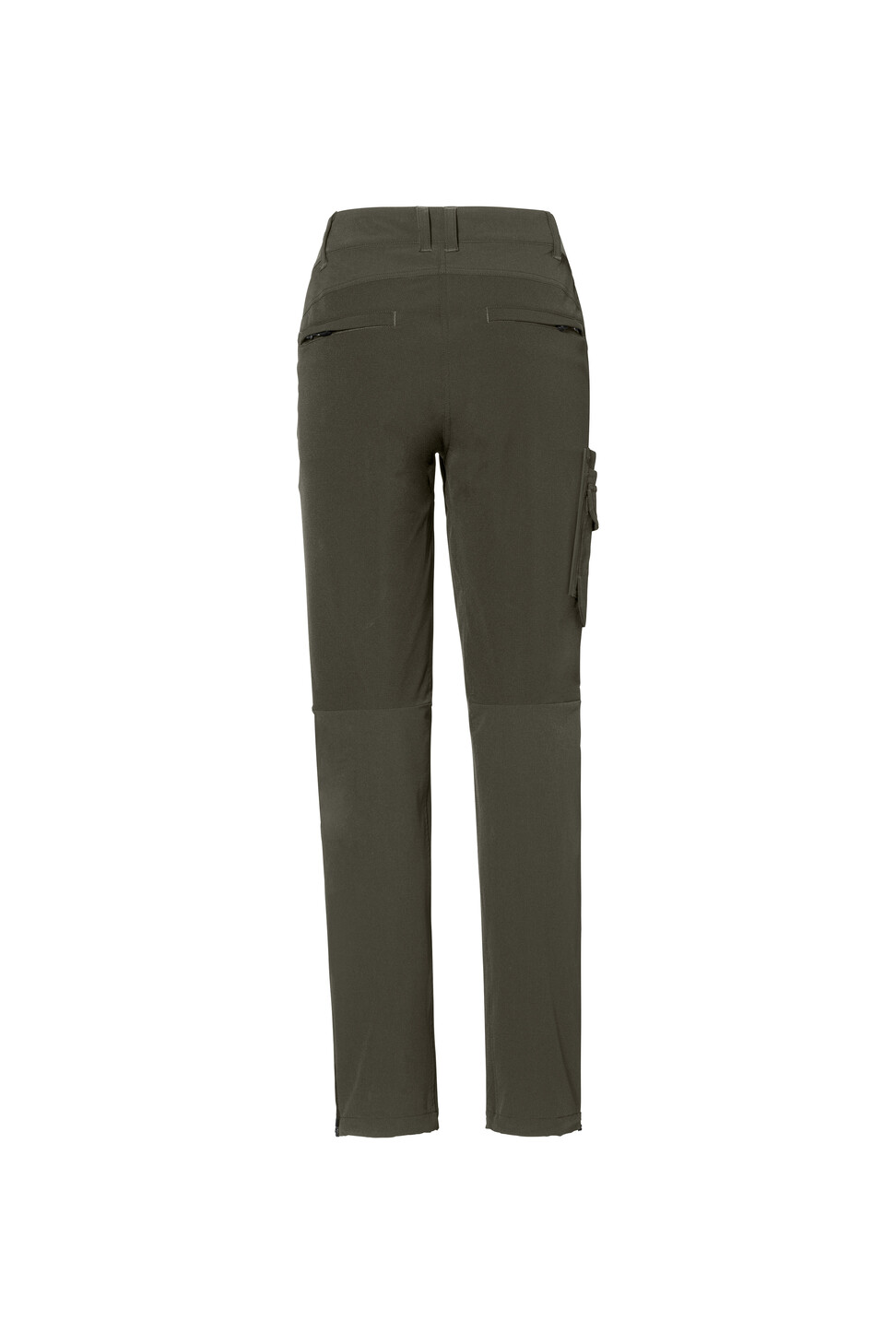 Die Hose verfügt über zwei Einschubtaschen, zwei Gesässtaschen mit verdecktem Reissverschluss sowie eine aufwendig verarbeitete Cargotasche mit Reflexstreifen. Beinabschlüsse mit Reissverschluss und eine Kellerfalte in der Seitennaht runden das durchdachte Design ab. Alle Reissverschlüsse sind von YKK, das eingewebte HAKRO HT. Logo und das eingewebte HAKRO Label stehen für höchsten Tragekomfort und Qualität.
