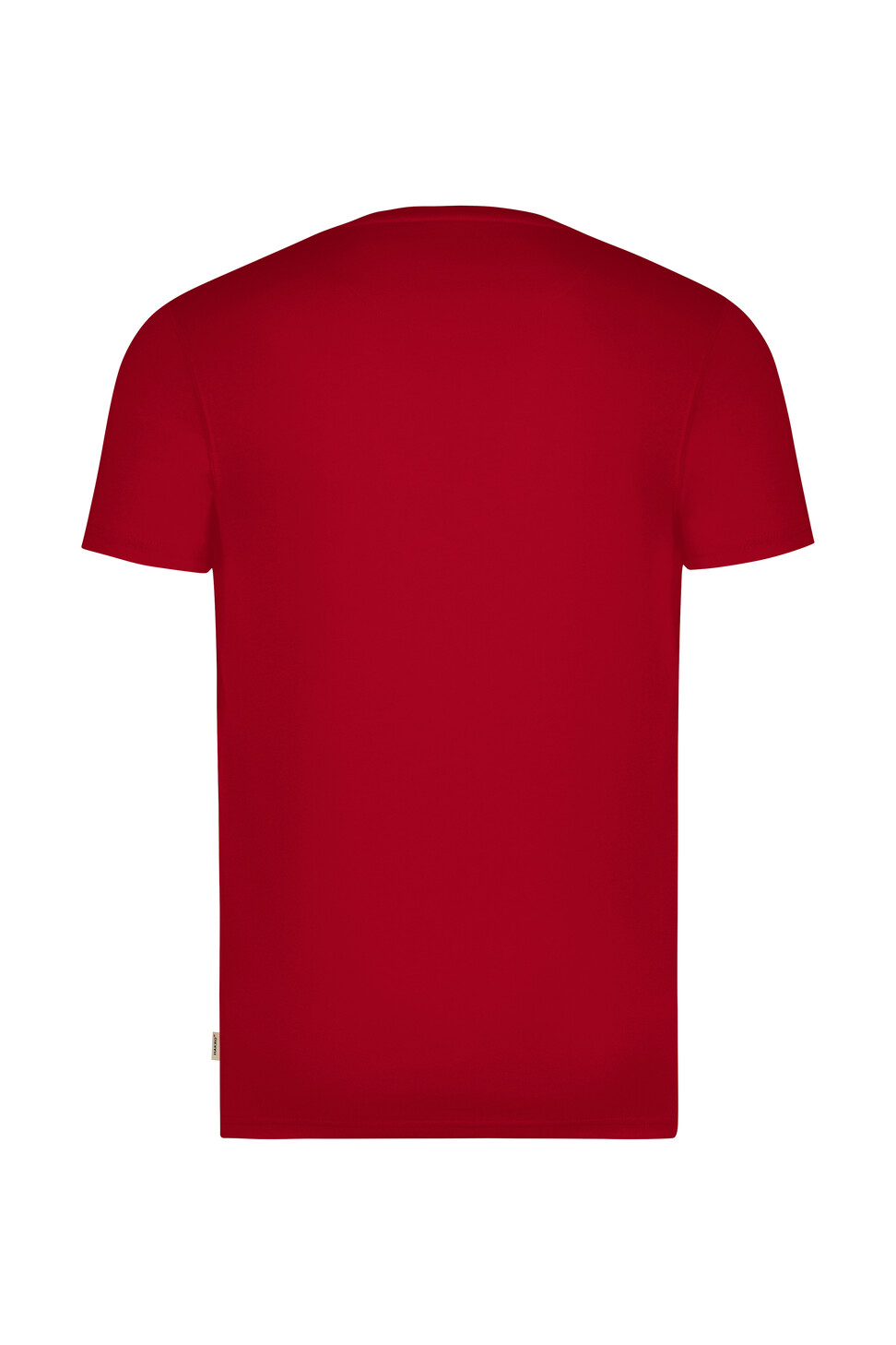 Hergestellt aus weichem, pflegeleichtem und funktionellem mittelschwerem Single Jersey aus MIKRALINAR ECO, einem HAKRO Performance Materialmix aus hochwertiger Baumwolle und GRS-zertifiziertem recyceltem Polyester. Das eingewebte HAKRO Nackenlabel aus hochwertigem Kettsatin und die ultraschallgeschnittenen Bandkanten sorgen für höchsten Tragekomfort. An der linken Seitennaht befindet sich ein gewebtes HAKRO Flaglabel.