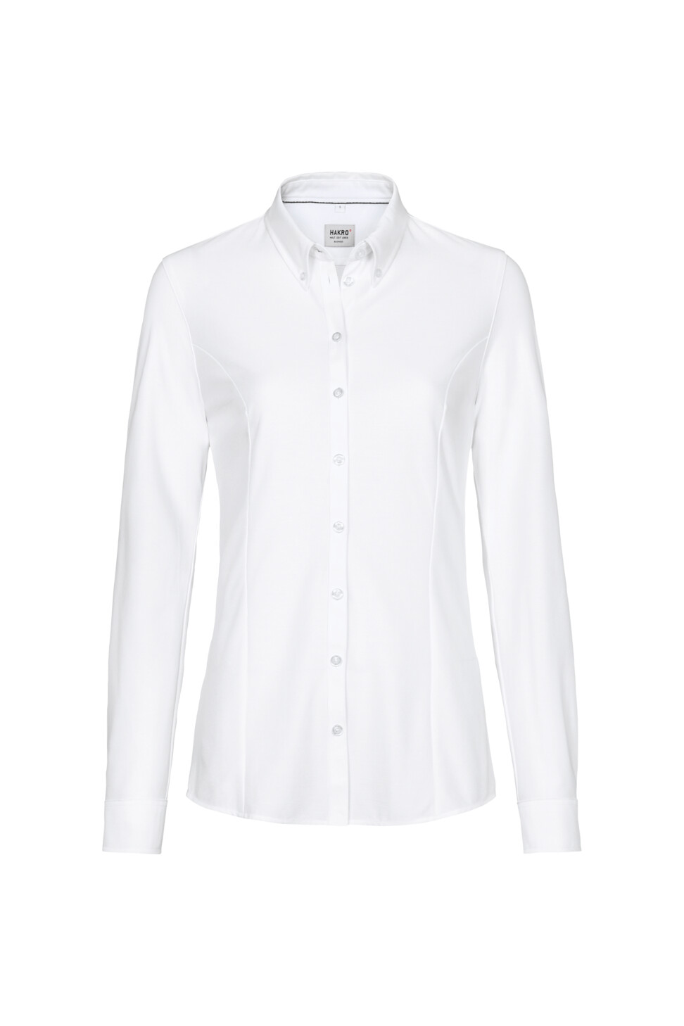 Hergestellt aus angenehm weichem und strapazierfähigem Jacquardgewebe aus einem Baumwoll-Polyester-Gemisch bietet diese Bluse höchsten Tragekomfort durch eine spezielle Stricktechnik für natürliche Elastizität. Das eingewebte HAKRO Nackenlabel aus hochwertigem Kettsatin mit ultraschallgeschnittenen Bandkanten sorgt für höchsten Tragekomfort.